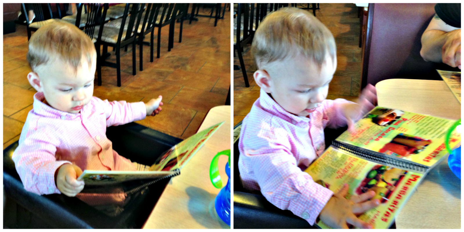 - We started venturing out to eat a little more this month as well. We were able to keep him occupied better than before with toys, menus, and eating. He loved Mexican and refried beans! He would eat spoonfuls of it!