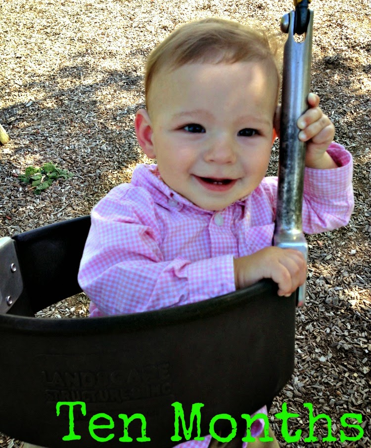 Ten Months: No official stats this month, but I am guessing 20ish lbs and 30 inches