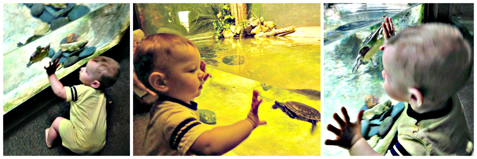 He really got into the aquarium though. He was super intrigued by the turtles and fish. I'm guessing he liked them better because he was able to get up close and 'touch' them.