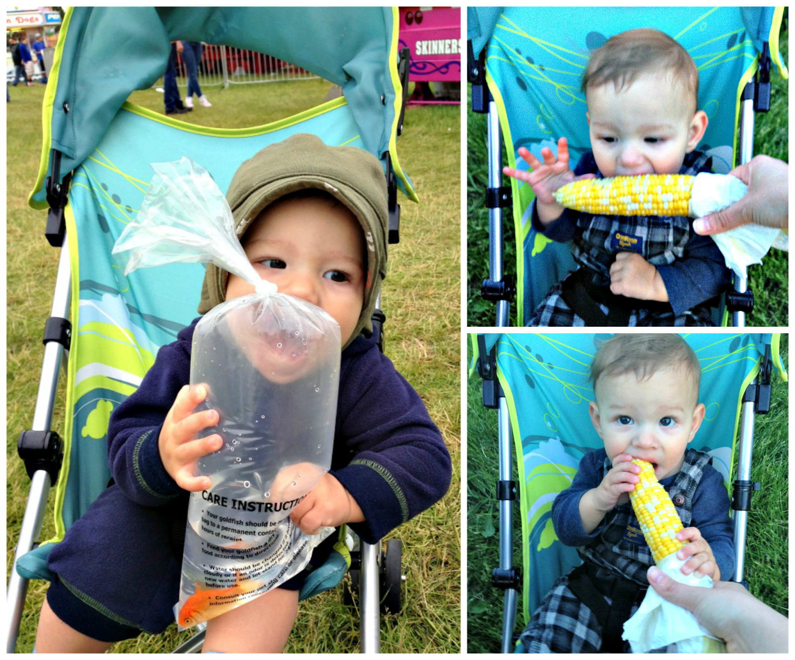 - Myles went to his first fair! It was a Memorial Day fair in our town called Young at Heart Festival. He loved it! The weather wasn't the greatest, but we still made the most of it. He tried corn on the cob for the first time and he couldn't get enough. I think he liked it so much because he could chew and gnaw on it as hard as he wanted. He also got his first pet fish. We didn't win it; a little boy gave it to us. He asked if Myles wanted it and I couldn't dare say no.