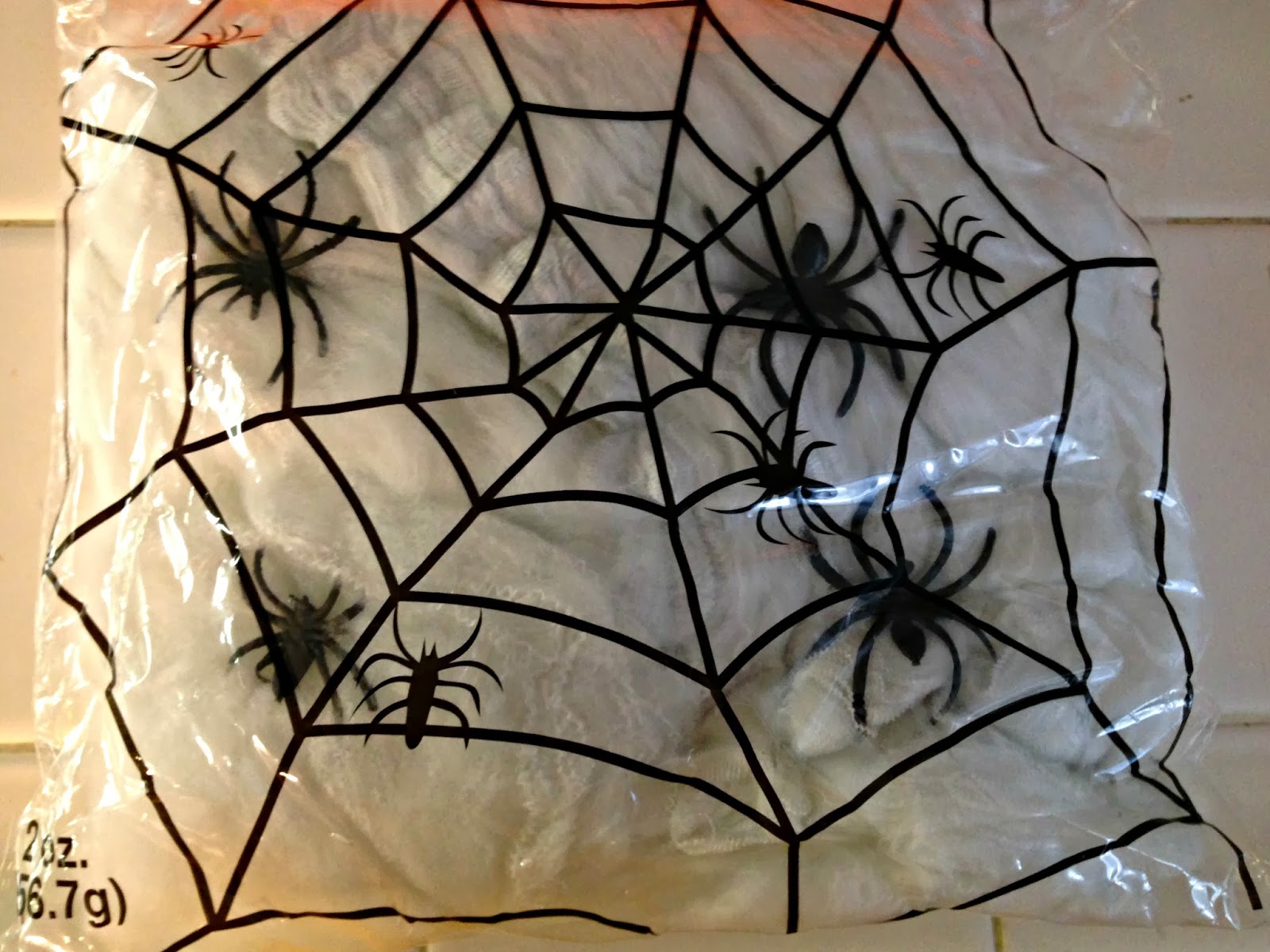 2 bags of old school Halloween spiderweb with the plastic spiders
