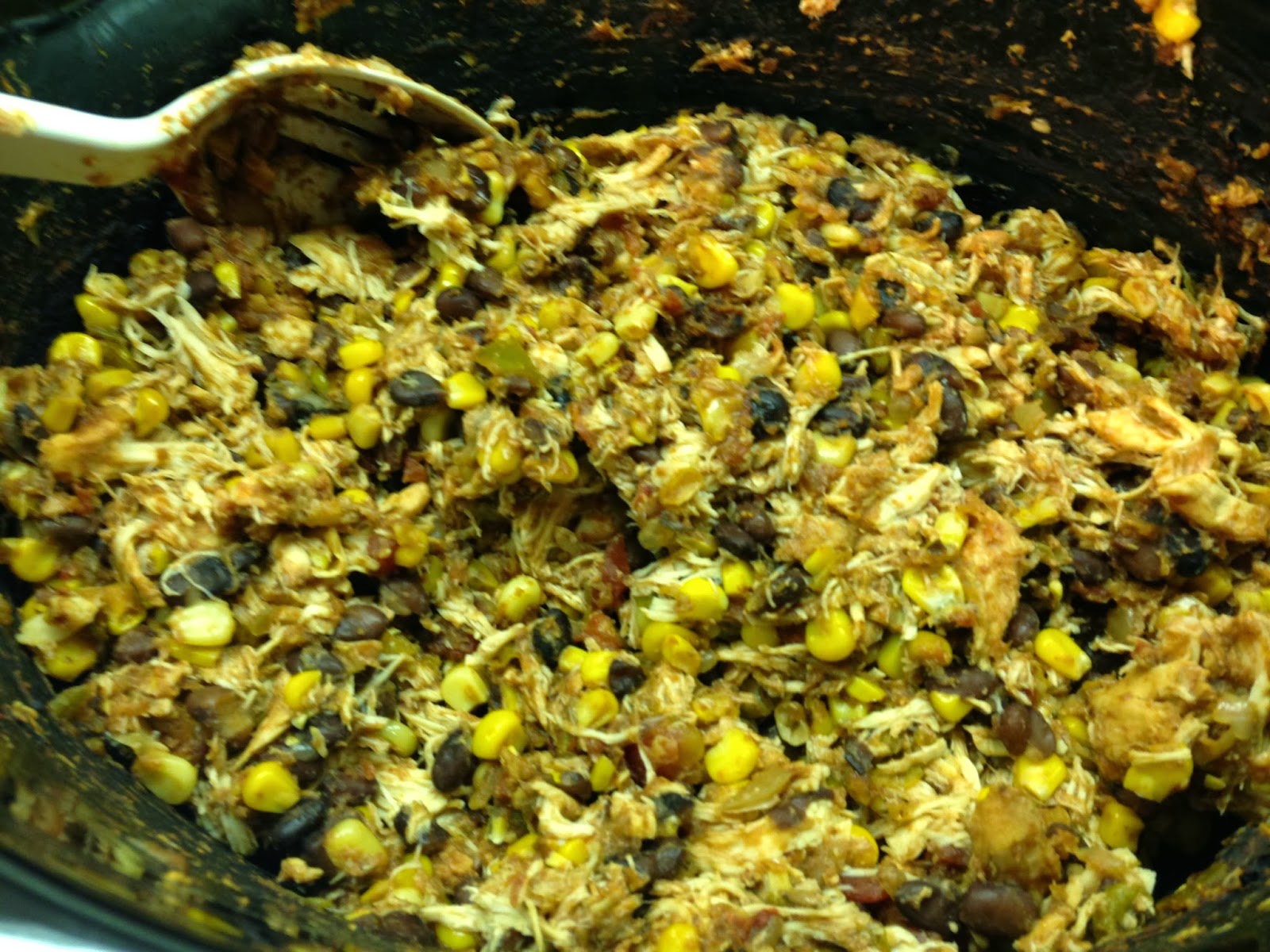 2. Cook for 5-7 hours until the chicken is cooked through and is tender enough to be easily shredded.1. Turn the Crock Pot on high. Add the chicken breasts, beans, black olives, corn, and salsa.