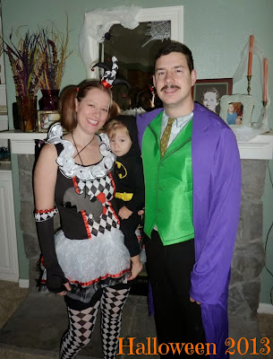 We decided to do a family costume with Myles being Batman and Mark and I being Joker and Harley Quinn. And yes.. Batbaby caught the bad guys ;)