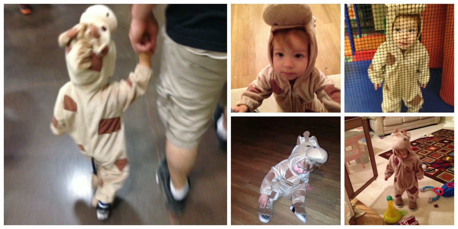I have to throw these in because they are just too cute! Just by luck this week, I was going through Myles' clothes and I happened to find two other costumes that are 12 months! I didn't want them to go to waste so I dressed him up and took some pictures.