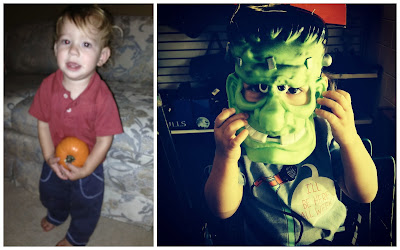 Here is Myles with his pumpkin and of course it's not Halloween without a little mask photo shoot!