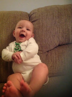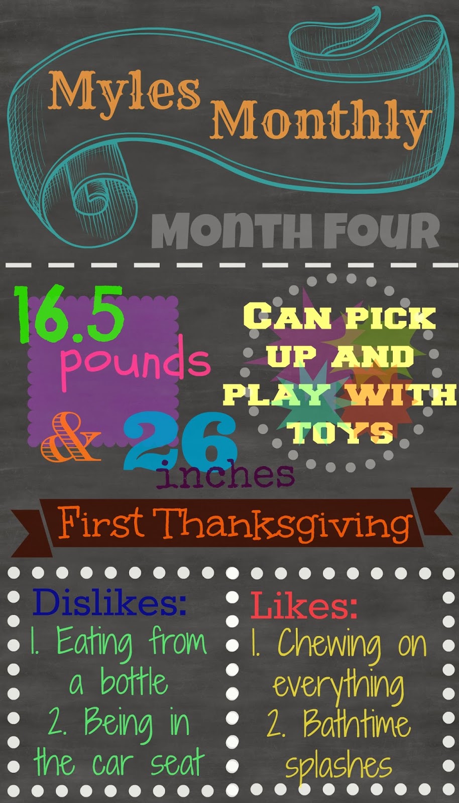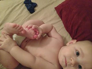 Myles found his feet: I had been trying to show Myles his feet for a long time. I think it's just so cute when babies play with their feet, and it's even better when they get a little taste of the toes. Every morning I would get Myles undressed from his jammies, change his diaper, and then let him play with his feet. It kept him entertained for 10ish minutes usually. It wasn't long after his hands found his feet that they ended up in his mouth. Best baby skill of all time :)Rolling over: This month Myles became a rolling professional. He got really good at going from his back to his tummy by kicking his legs up and pushing them down while he twisted his torso. Sometimes he would roll all the way across the living room floor.