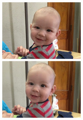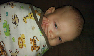 Along with that technique, we started some sleep training. And by we I really mean Mark. I couldn't stand the thought of hearing Myles cry, but I got to the point that I didn't know what else to do. We hooked up the baby monitor and Mark would take the first shift. It worked out because he usually stayed up later and I wanted to lay down right away. Our doctor had told us that at 5 months he should be able to sleep at least 4-6 hours at a time. We did 4 hours at first. If he woke up before the 4 hours was up Mark would let him be and see if he would go back to sleep on his own. We decided that we wouldn't let him cry for more than 10 minutes before going to get him. It was very sporadic at first, but over time, his sleep definitely improved. Some nights, he would wake once, cry for 3 minutes, and fall back asleep. Other nights, he would sleep all the way through the four hours. He still had nights when he would wake up within an hour and not stop crying until I nursed him, though. From night to night, I wasn't sure we were making any progress, but after a couple months of sticking to it, he started to sleep for longer periods more consistently and the wake ups lessened.