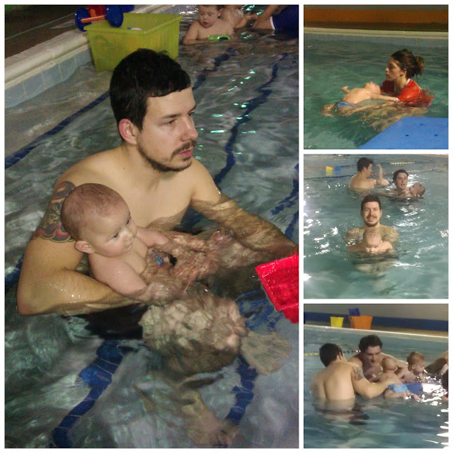- Swimming: he clearly loved his swimming class. It was a perfect way for him to get practice with motor skills, interact with other babies, and spend quality time with his dada. Mark decided swimming class was going to be his thing with Myles. I did not object one bit! (I still had no energy and chlorine does a number on my skin).