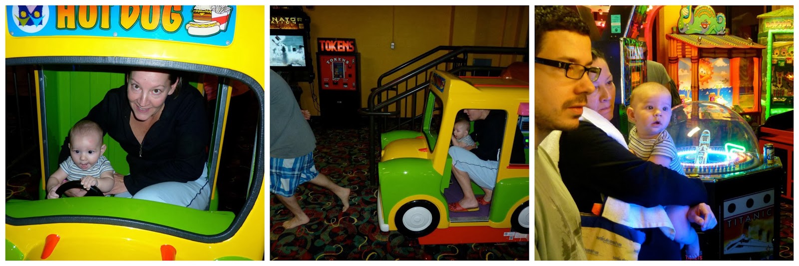 - After a full day of swimming, I laid down for a bit while the rest of the fam went exploring. There was a cute story time theater, a little mascot action, and a pretty awesome arcade (from the pictures, at least...haha)