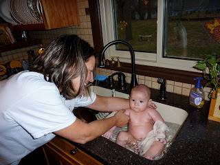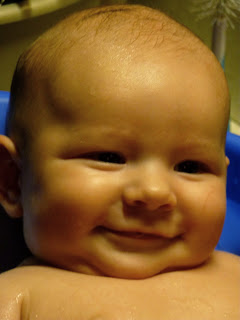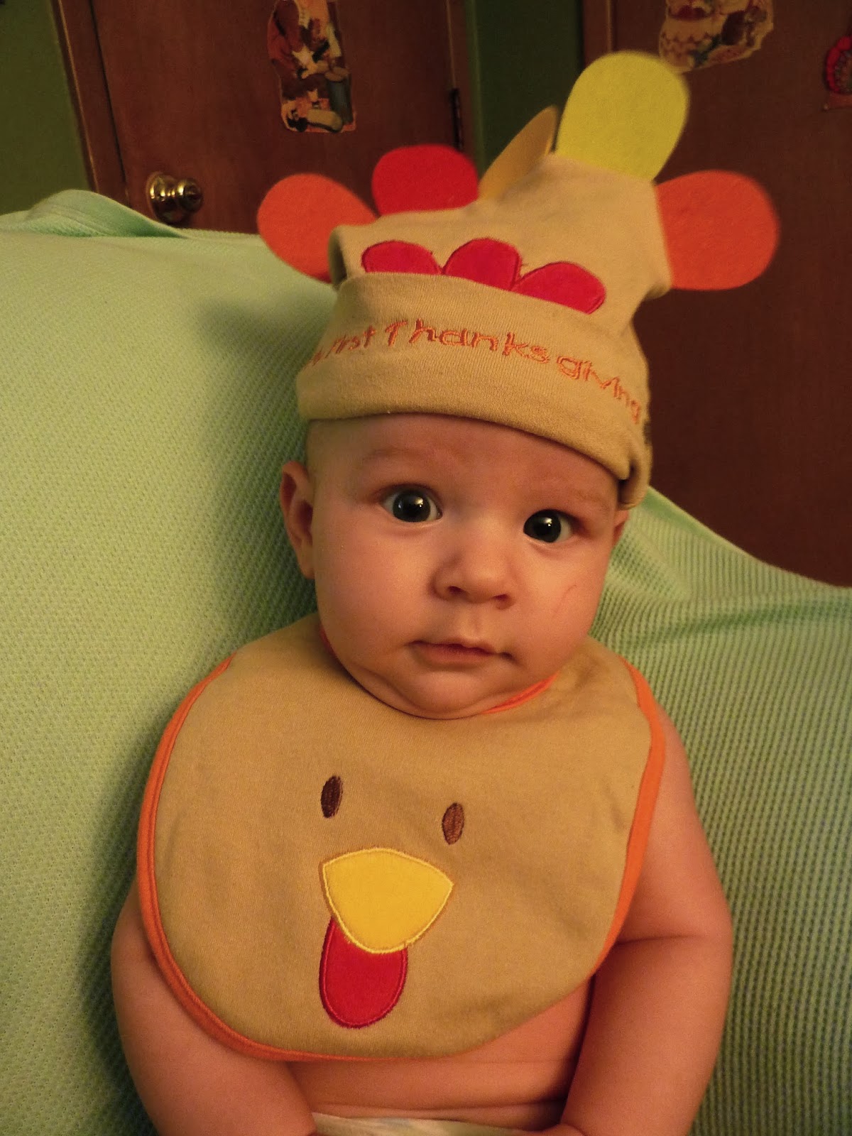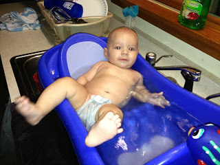And to my delight, blow-outs came back in full-force this month! The size 3 diapers were just not holding it all in! They didn't go high enough up his back to keep it all contained. His poop was constantly spewing out of the diaper and up his back... yuk! I decided to move him up to the size 4 diapers even though he wasn't heavy enough yet. It helped tremendously! They went way higher up his back and held his blow-outs to a minimum.