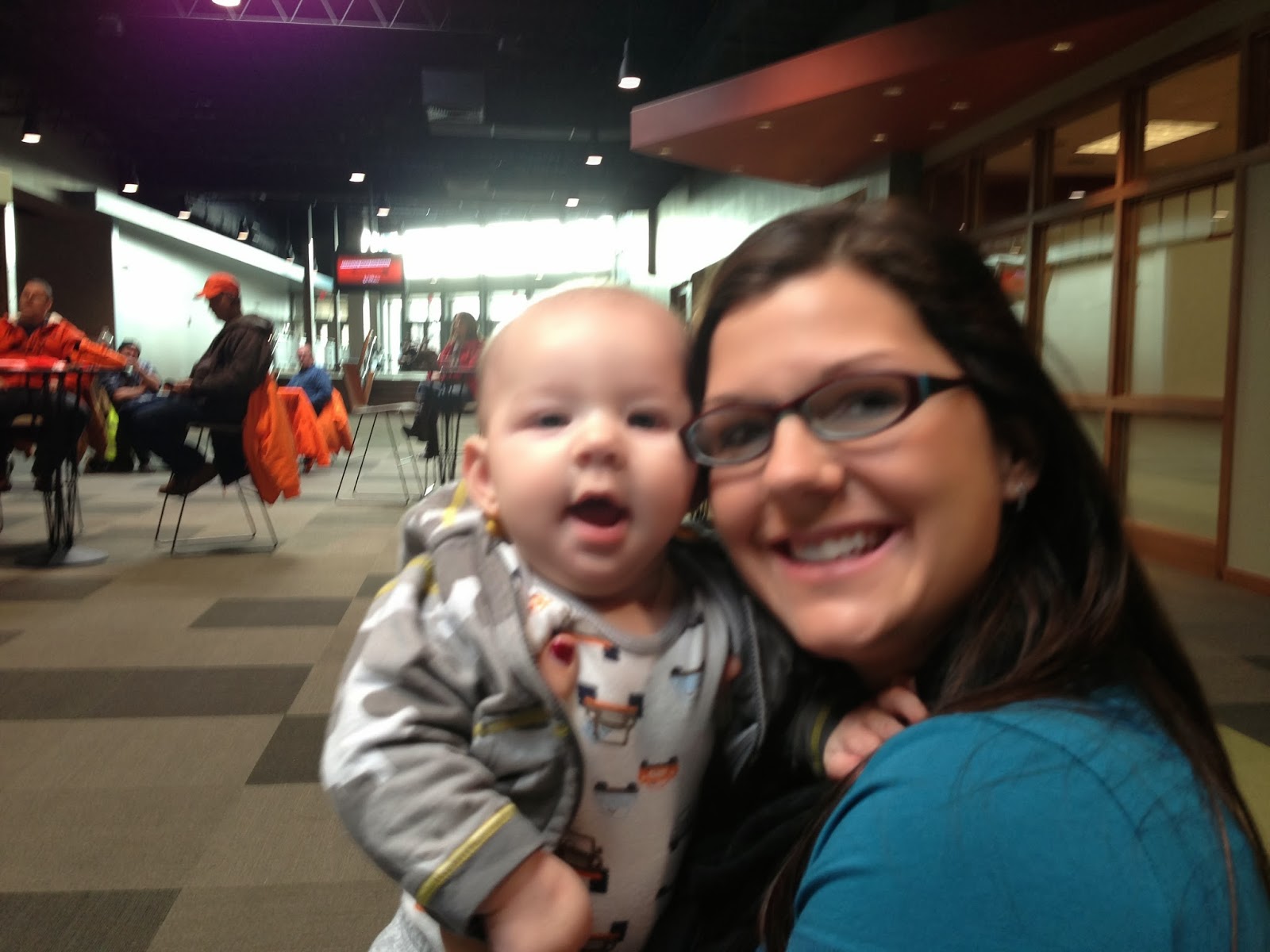 - Church: we had been going here and there since Myles was born, but we started being more consistent this month. I still was not comfortable with dropping him off at the daycare, so we just sat in the lounge area and watched on the TVs. They have a women only nursing room with TVs as well. It was very convenient to be able to feed Myles and not have to miss any of the service. Most of the time, he did really well. He liked seeing all the people and listening to the singing and sermons.