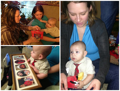 - Christmas Eve was spent at my dad's (I don't have any pictures) and then Christmas Day, Myles put on his Sundays' best (cutest little man tie) and headed to my parents. He was the center of attention, per usual, and he got some really fun gifts (Mickey and Nemo!). And daddy got a picture frame of "Myles and Daddy Firsts" that still makes me tear up now.