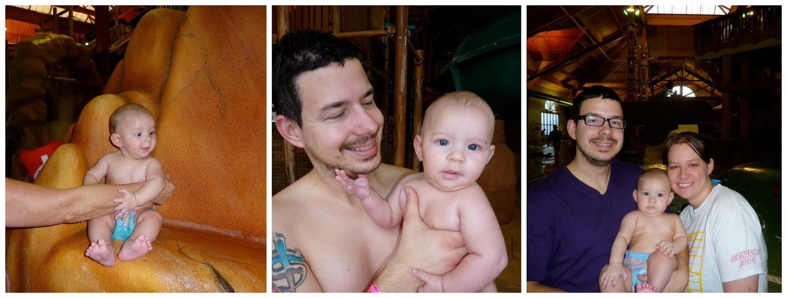- I've been to Wisconsin Dells dozens of times since I was little, but have never stayed at the Great Wolf Lodge before. The indoor water park there is awesome! They have 4 different sections featuring slides, play areas for all ages, a wave pool, lazy river, baby pool, hot tubs... everything you could want in a water park and it's inside! It was crazy swimming inside, while looking outside to mounds of snow and ice! This was Myles' first time in a pool. It seemed to be a bit overwhelming for him but he definitely liked it. He couldn't do much but sit in the baby pool, but that was fine by him. He also did a lot of people watching, which he loves! He finally took a nap on grandpa poolside, while us big kids took to some rides :)