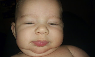 Breastfeeding was still going well. The throwing up once a day (from months Three and Four) stopped and he was feeding a little bit longer at a time. I continued to offer a feeding about every hour. He would usually feed for about 4-5 minutes on one side, and then I would try to get him to do the same on the other side. Because he was still feeding so often (and not taking a bottle), we didn't go out much. Plus, it was winter and freezing and driving was dangerous and I had to clean the car off and the possibility of slipping on the ice and trying to keep Myles from getting sick and warming the car up and living in an upstairs apartment and COLD... can you tell I am not a fan of winter in the Midwest! Needless to say, we were home most days, so feeding often wasn't really much of an inconvenience to me. I probably would have gone out more, if I wasn't so uncomfortable with feeding him in public. It didn't so much bother me, but I always felt people starring or acting weird about it. So I pretty much avoided it altogether by just staying home.