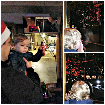 The driver let him ring the bell. It was too hard to pull by himself, so daddy had to help him make it ring. He loved looking out the window at all the 'pretties'.
