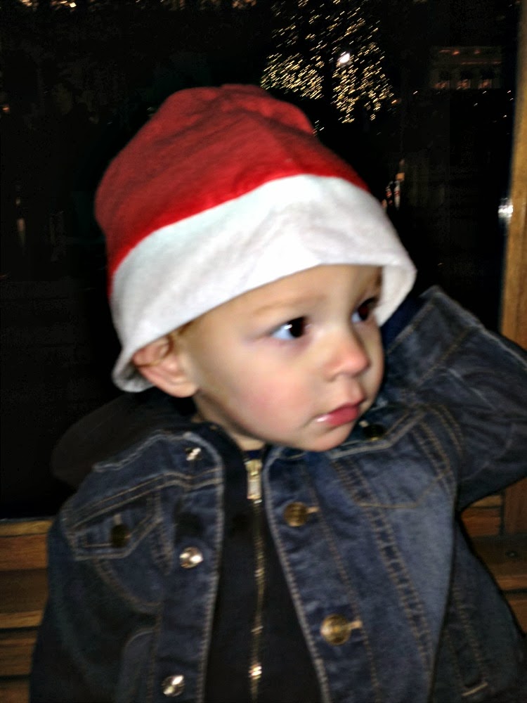 When we got on the Car, we were given Santa hats. I can't believe Myles kept it on long enough for me to take a picture.