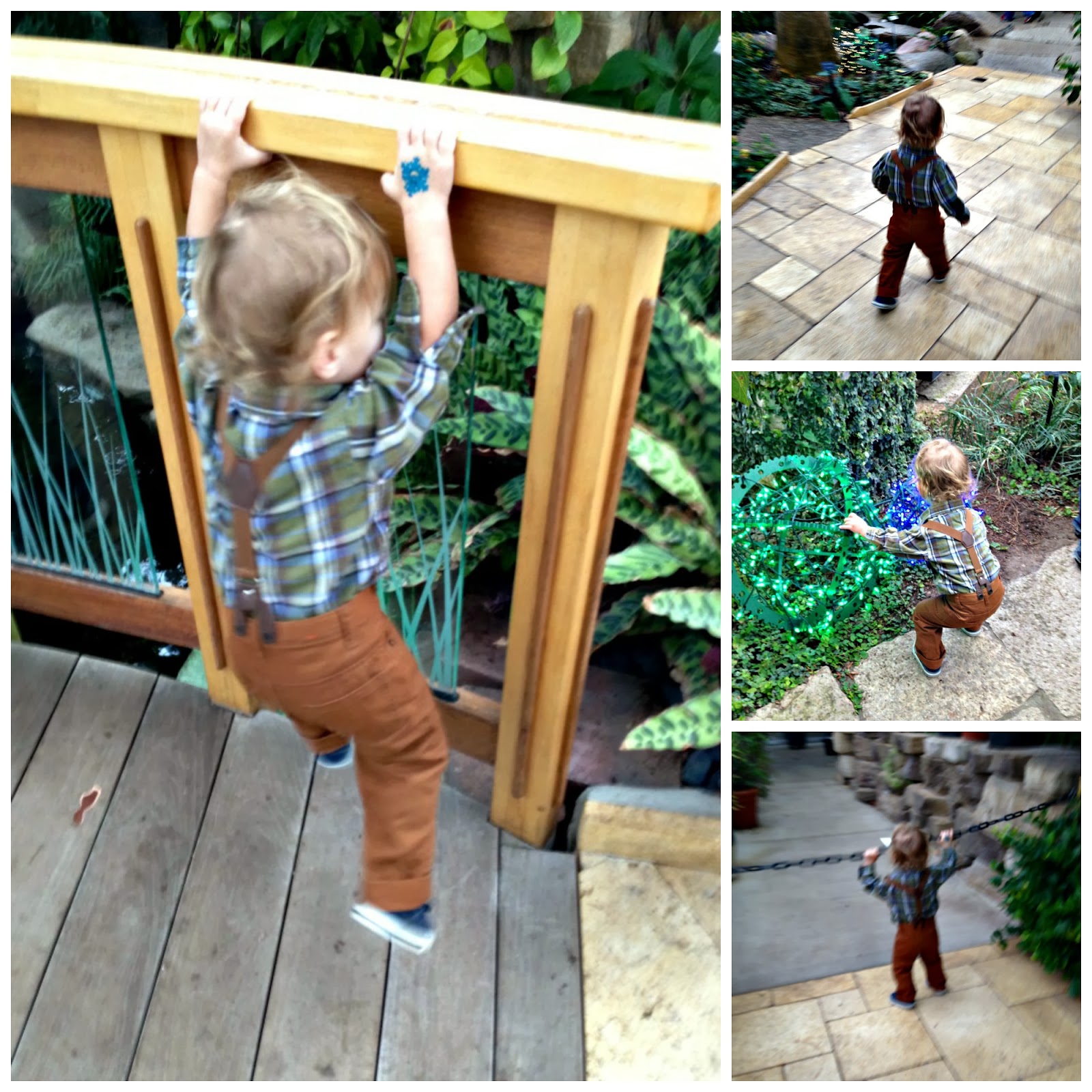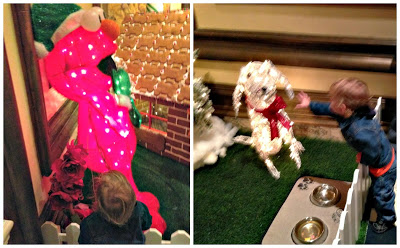 Myles had a great time running around the conservatory, touching all the plants, climbing bridges, playing with the lights, trying to cross over into restricted areas, pointing at all the fish, and kissing frogs! He got a snowflake tattoo, made watched the lady make him a snowman pillow, and chatted with Santa.