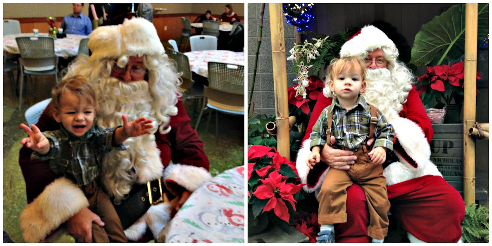 didn't go over too well: classic Santa fail! But then we caught Santa inside the conservatory and gave it another try... I didn't get a smile, but I think it turned out pretty good for our first Santa experience.