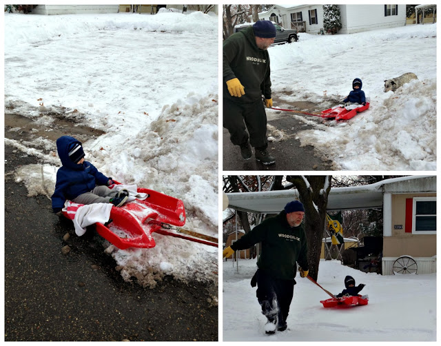 Myles also went 'sledding' for the first time with grandpa. It's been so cold since we have been in Illinois that I didn't want Myles to go out to play in the snow. But one day when we were leaving grandpa's house, he put him on a sled and pulled him around for a couple minutes. He really loved it! He was smiling the whole time and didn't want me to pick him up. I hope we get to take him 'real' sledding before we leave in a week.