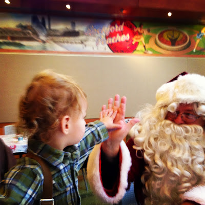 When Santa first came by our table, Myles didn't really care too much about him, but he did give him a nice high-five!