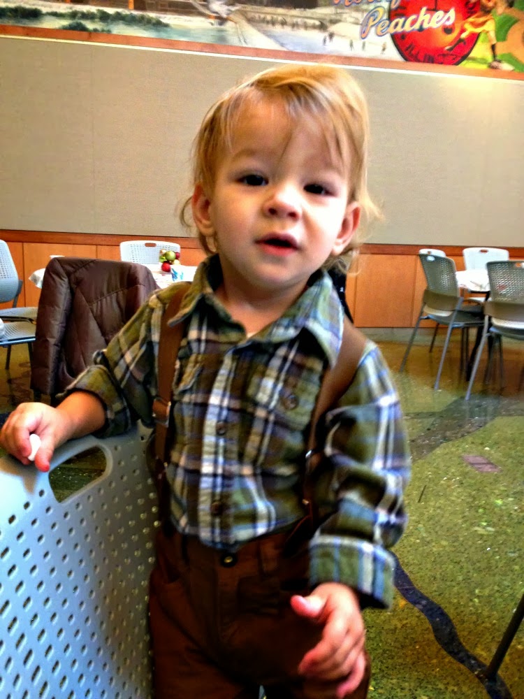 When we went back home to Illinois for the holidays, I took Myles to have breakfast with Santa at the conservatory. I had to dress him up in his finest gear :) I have been looking for suspenders for Myles for a long time, but I couldn't find them anywhere. Well when we got back to Illinois, grandma hooked us up with these beauties!
