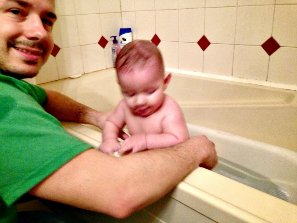 - This month bath time became a fighting battle. Once he started being able to pull up to standing, it was game over. As soon as I put him in the tub, he would stand up by the edge. Standing up in itself wasn't that big of a deal, but because he was still in a baby tub inside of the big tub, he was not stable. I didn't want him to get hurt, so I would make him sit back down, but then he would get really mad and just try to stand back up again. Also when he stood up, he would sometimes try to climb out of the tub altogether. So bath time this month was short and sweet. I would sometimes take showers with him to avoid having to deal with bath time meltdown.