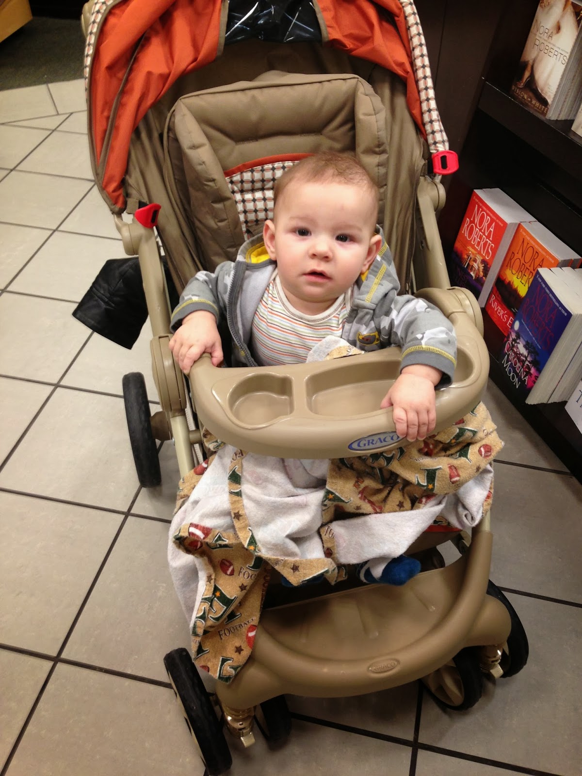 - Since he was getting so good at sitting up, we decided to try out the big boy seat in his stroller. For the first time, we went to the mall. He did pretty good, but he didn't like sitting in there for too long. He was ready for me to hold him after about 15 minutes.
