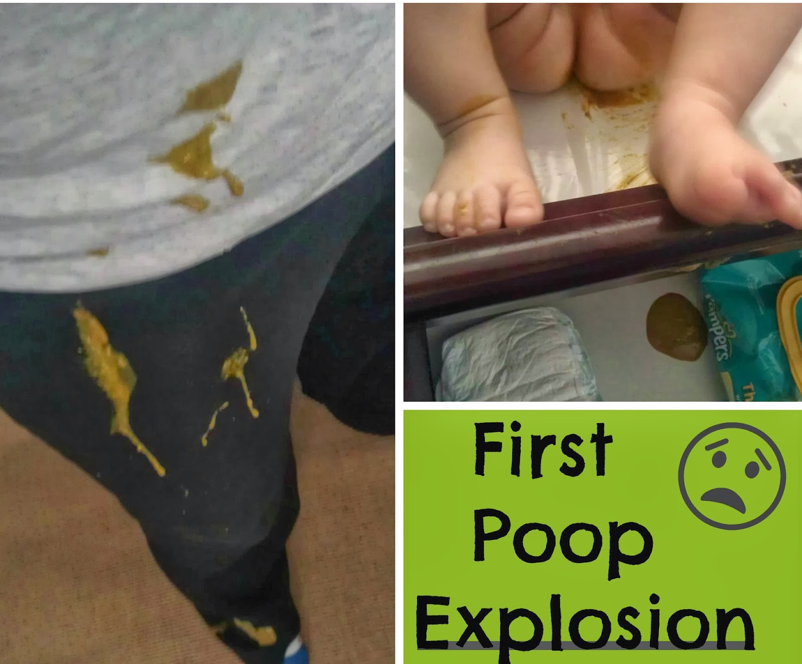 - This month was a double-whammy in motherhood milestones for me! I had my first projectile poop experience. Don't look down if you can't handle poop up close and personal :) I made the huge mistake of assuming he was done pooping. Reality was, he was just beginning. Liquid poop explosion all over me, him, the floor, the furniture, etc. A mere two days later, I got hit with the classic puke-in-the-mouth. I was playing with Myles and had him over my head making him laugh. I was making goofy noises, then... Burp... Spit-up... Right into my mouth. It was literally perfect timing right as my mouth was open.