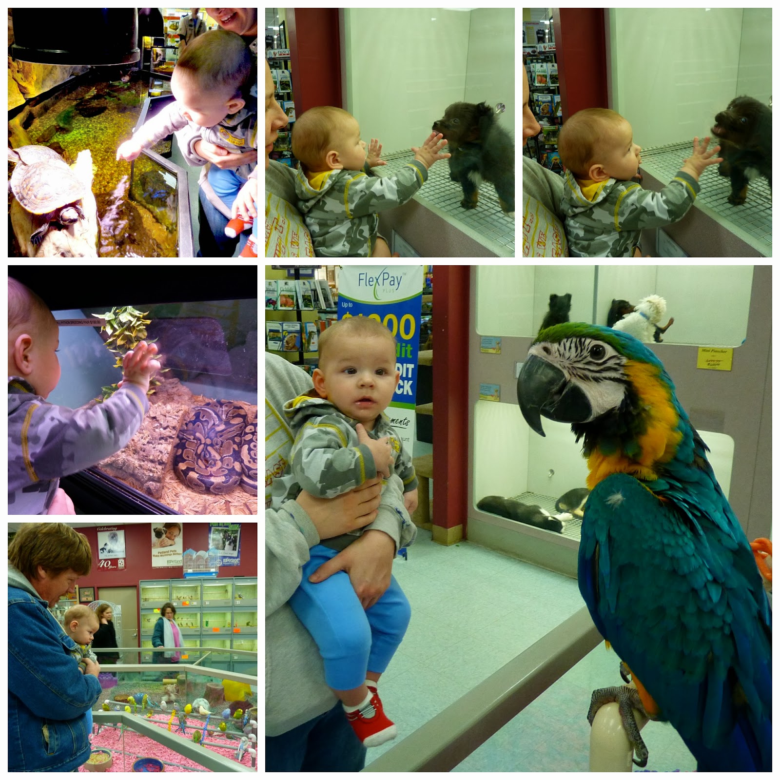 - We also went to the pet store for the first time. I figured Myles would have liked seeing all the different animals and hearing them make noises. He was just starting to 'understand' the idea of other live creatures. His favorites were dogs and birds. I'm not sure he really knew what was going on, but it definitely kept his attention and he was reaching out to touch a lot of the animals. It was awesome to see his reaction to encountering many of these animals for the first time.