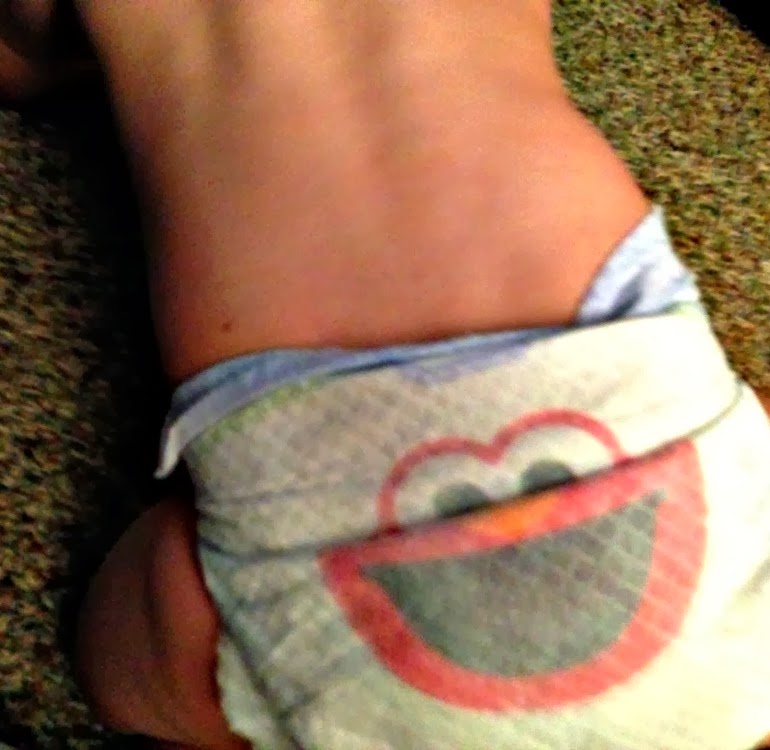 I also discovered his first mole. It is in the cutest place too! The picture isn't very good, but it is on the left side of his lower back, just above his hip. This still remains his only mole. Hopefully it stays that way and I didn't pass on my 'moley' genes to Myles.