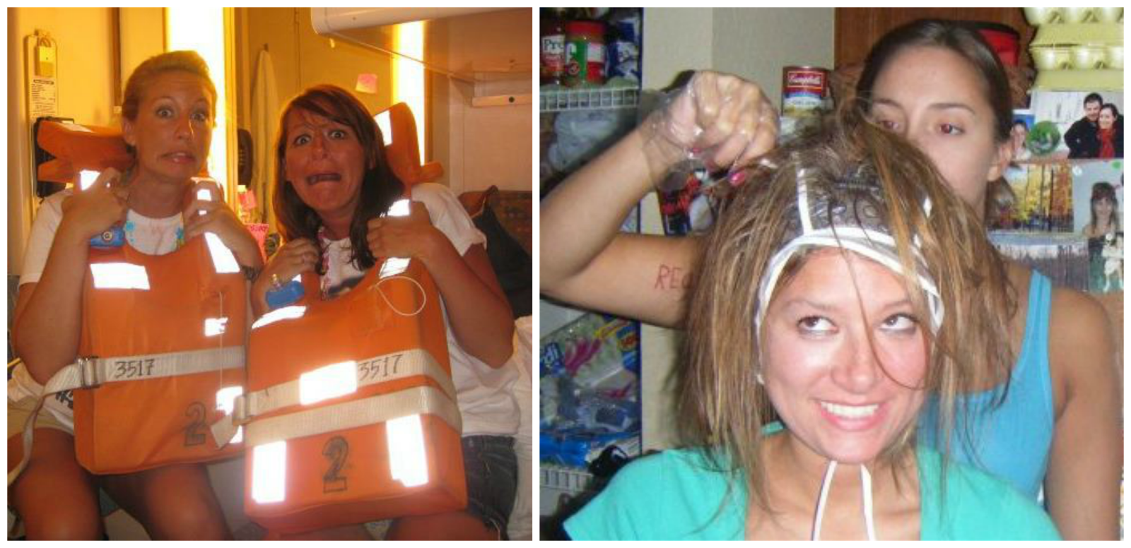 Left: Karen and I making sure we were prepared for an iceberg attack on our cruise.