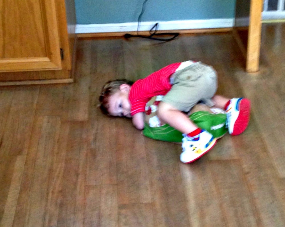 Middle: Myles on the ground, Cameron trying to figure out what he is doing.