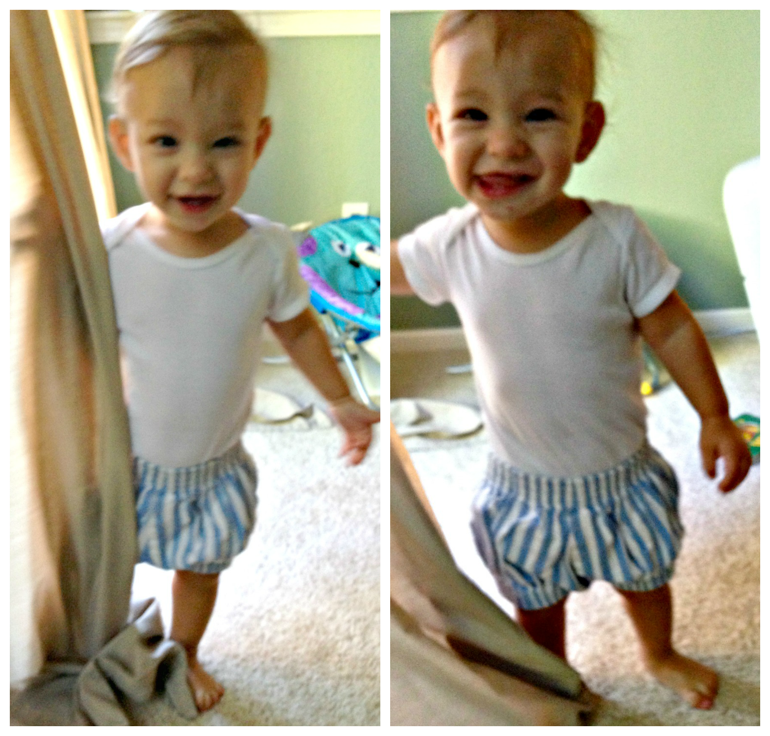 • Laugh: getting him to full on laugh was pretty easy now. He started to become ticklish and loved peek-a-boo, especially when you got really up close to his face. These videos of him laughing are the greatest!