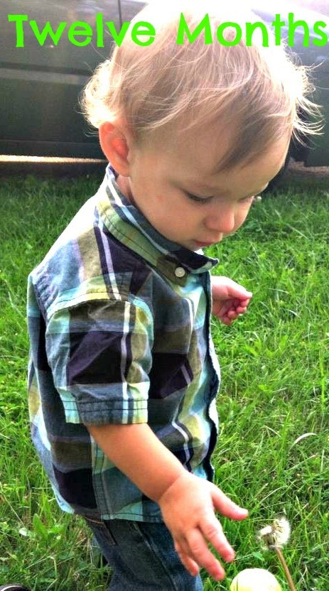 Again, thankfully nothing major this month in the health department. Like I mentioned in the last update, Myles' weight had slowed way down over the last couple months. He had an offical weigh-in at his 12 month well-check and my observation was confirmed. He only gained 6 ounces since his last check up at 9 months. I was just so used to him gaining pounds between each visit that I was beginning to worry a lot about it. I know that the weight gain slows down as they get older, especially when they start being mobile, but this seemed a little extreme to me. I asked his doctor what she thought and she wasn't concerned at this point. At least he wasn't losing weight and was still in the 20s, percentile wise. He didn't show any other symptoms of being malnourished and he had TONS of energy, so I just made a point that he was never dehydrated and always offered him food for all meals and snacks.