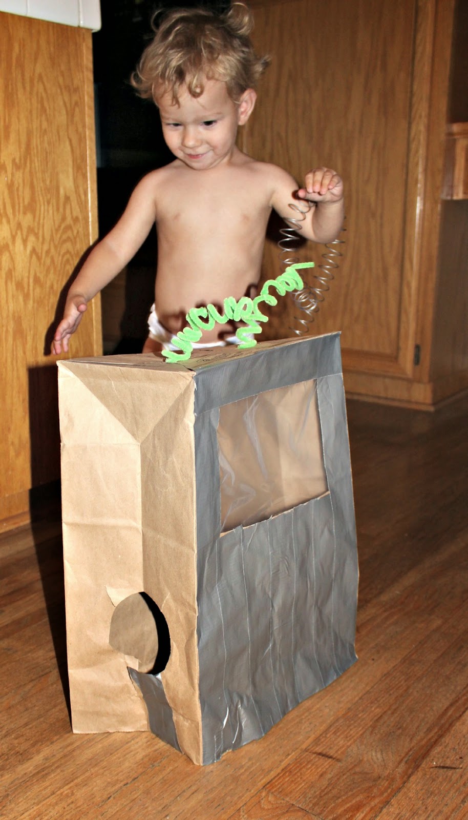 *Because this activity involves cutting with scissors, it should be made by an adult. Kids can watch and help at your discretion, but for safety reasons, should wait until the costume is complete to play.*