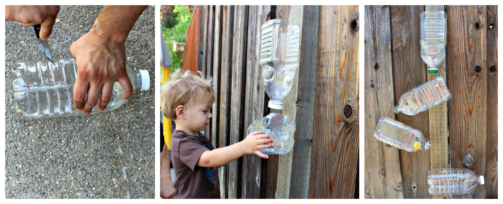 ReplyDeleteWhat if u used peg board? U could attach the bottles with nuts, bolts, and washers, even have some more flexibility in how they are positioned. Then, lean the board against the fence or move where ever u like! When u get tired of one configuration, move it around without drilling more holes (as long as plastic holds out).