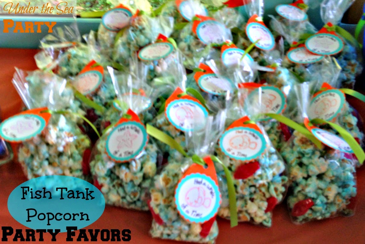 Next on my favors list is what I have named "Fish Tank Popcorn Bags". I got the idea from this pin and then just changed it up a bit to suit my theme and colors.How I made it: