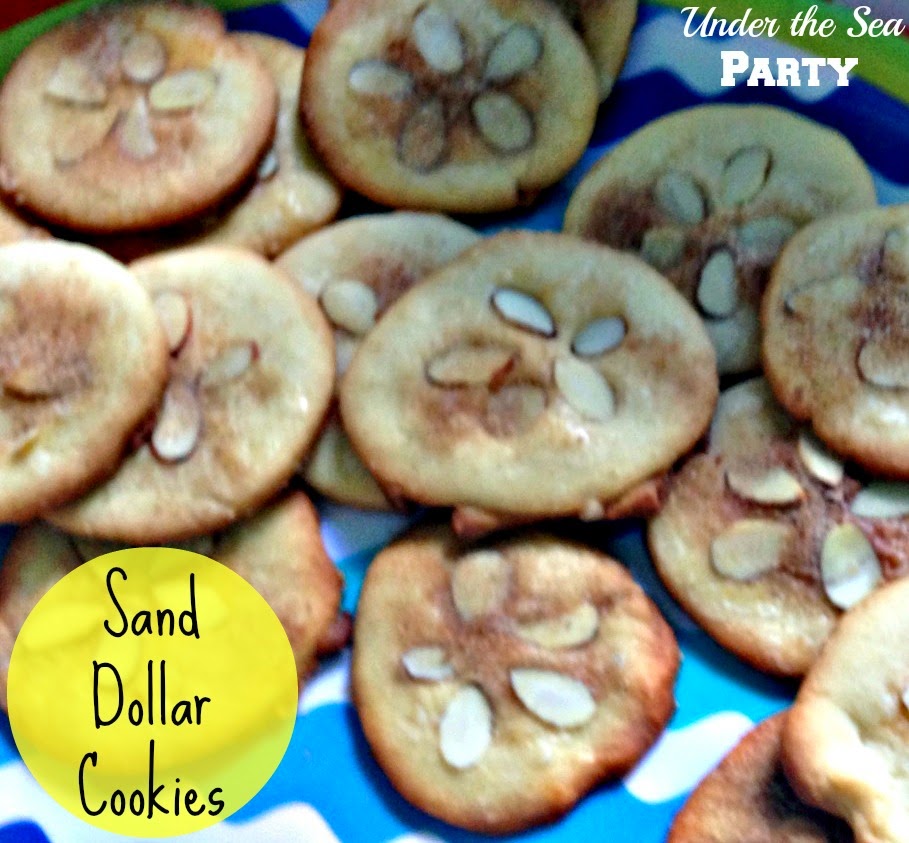 By the time we had planned out all of the food, desserts, and favors, I was pretty sure we had enough and maybe even too much (wait is it possible to have too much food or dessert at a party?), but I seriously could not have an Under the Sea themed party without these Sand Dollar Cookies! Talk about a 'pin-worthy' picture... yum.. I just could not resist these!How I made it: