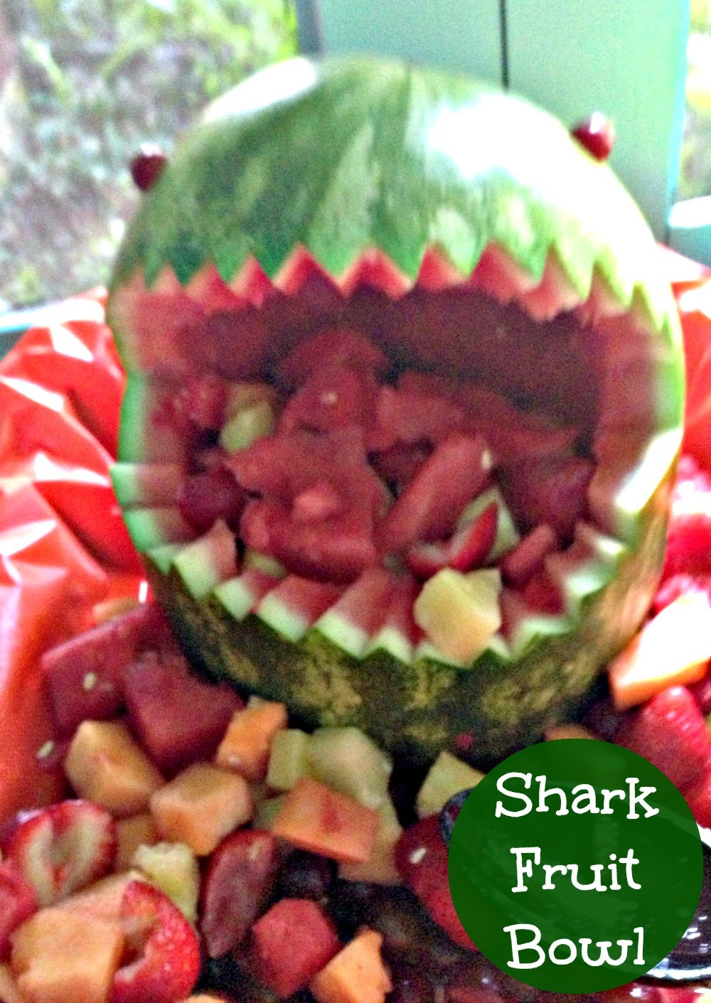 My mother made this as well. I think she did a great job, but we laughed that it looked a little more like a monster than a shark! Regardless, the fruit was yummy and the intention was spot on :)