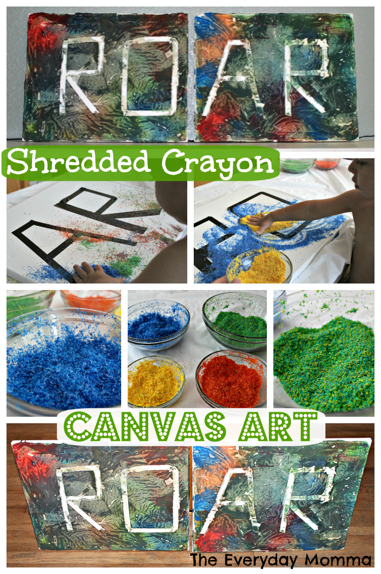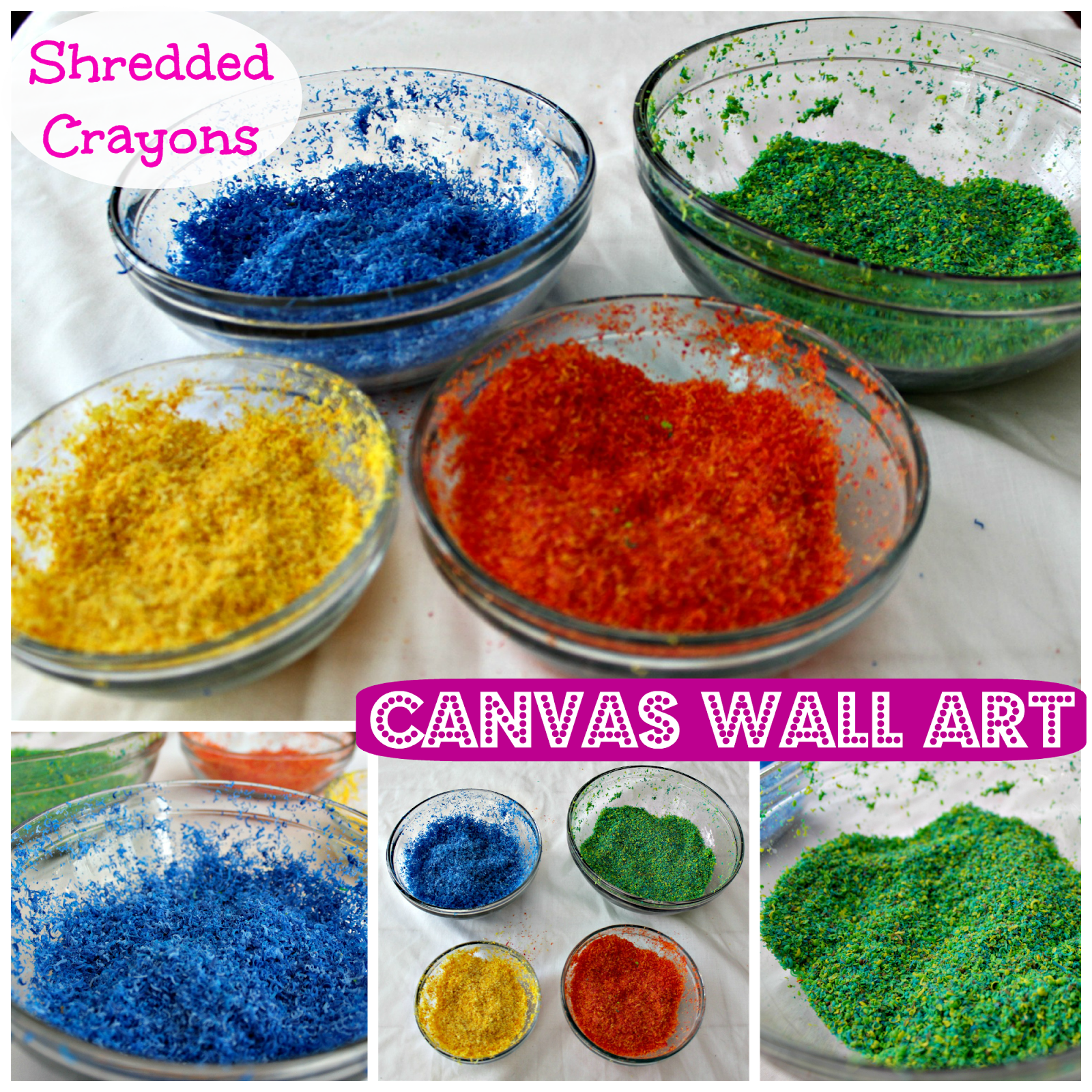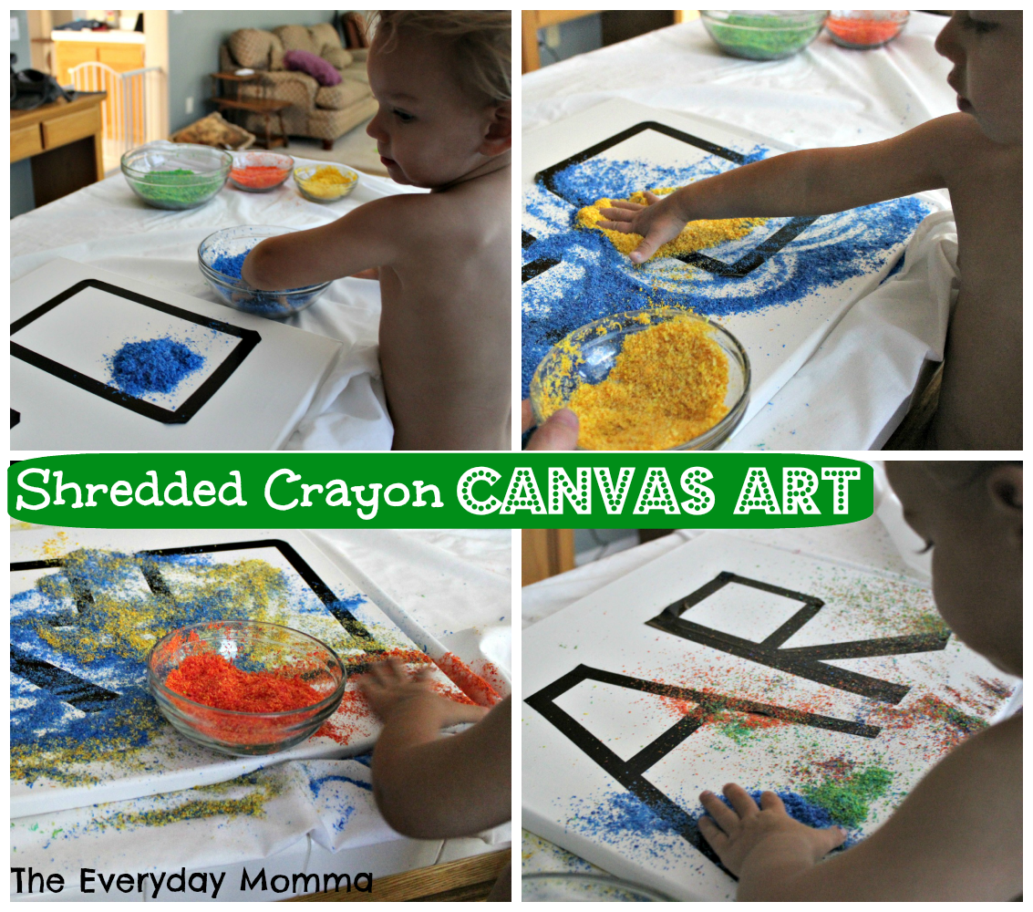 5. Time to get the kid(s) involved. Lay out the canvas(es) and have them sprinkle the shredded crayons all over.