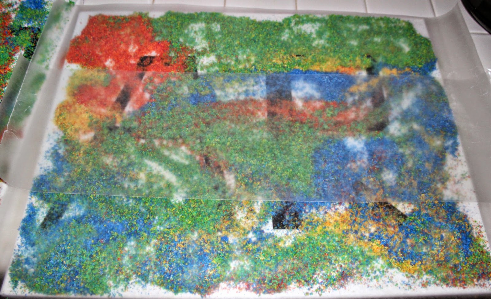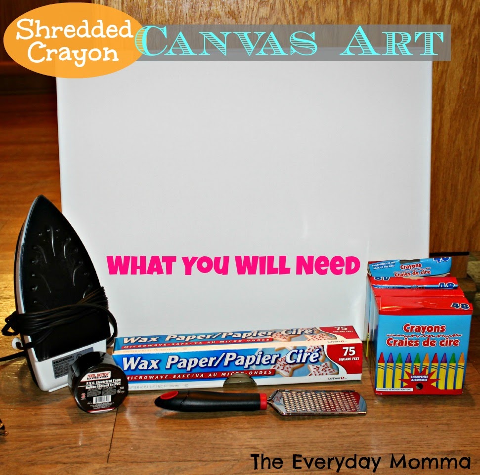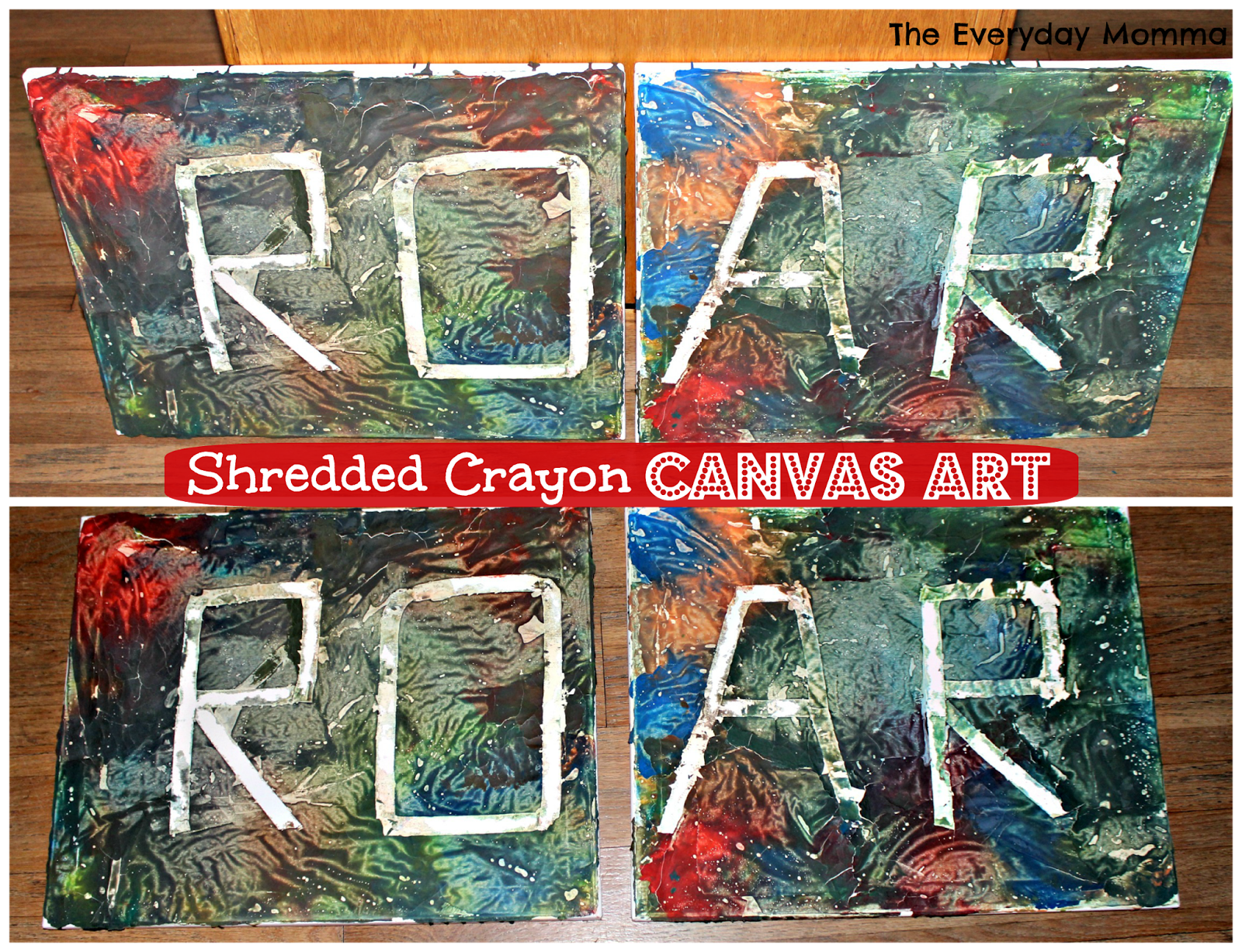 5. Time to get the kid(s) involved. Lay out the canvas(es) and have them sprinkle the shredded crayons all over.