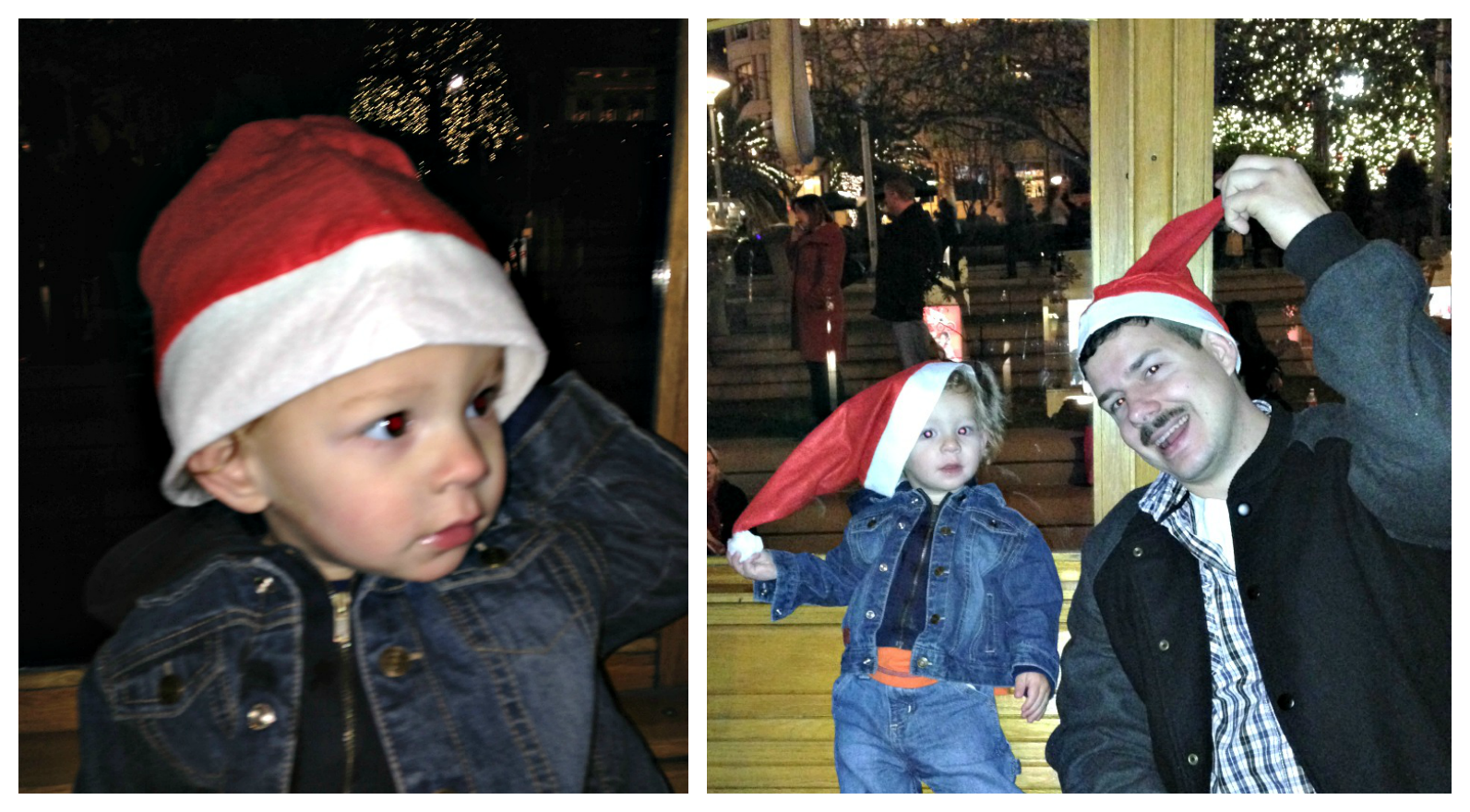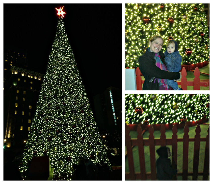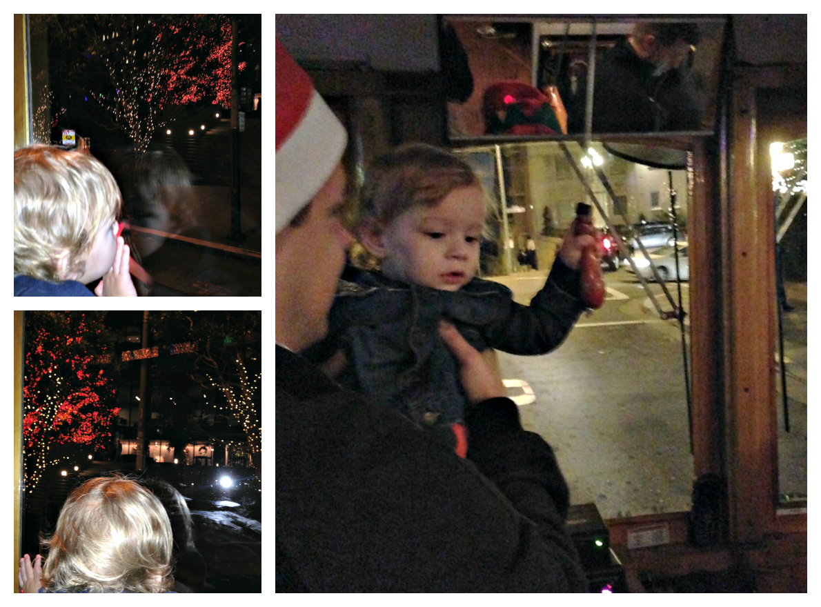 - Towards the end of this month, we started celebrating Christmas. Last year, Christmas wasn't really what I wanted it to be. We had just moved and I was still miserable, trying to survive on no sleep, on top of battling PPD. Needless to say, we didn't really celebrate as I would have wished for Myles' 1st Christmas. So I decided that I would consider this year his real first Christmas and I was going to do as many festive things as possible. The first thing we did was go on a holiday lights tour on a Classic Cable Car in downtown San Fransisco! I love touristy stuff like that and it was everything I wanted it to be. I so want to make it a Christmas tradition that we do every year! It started in Union Square and then toured the city, stopping once at the Fairmont Hotel. Here are some highlights and if you want to see more check out my Holiday Festivities 2013 post.