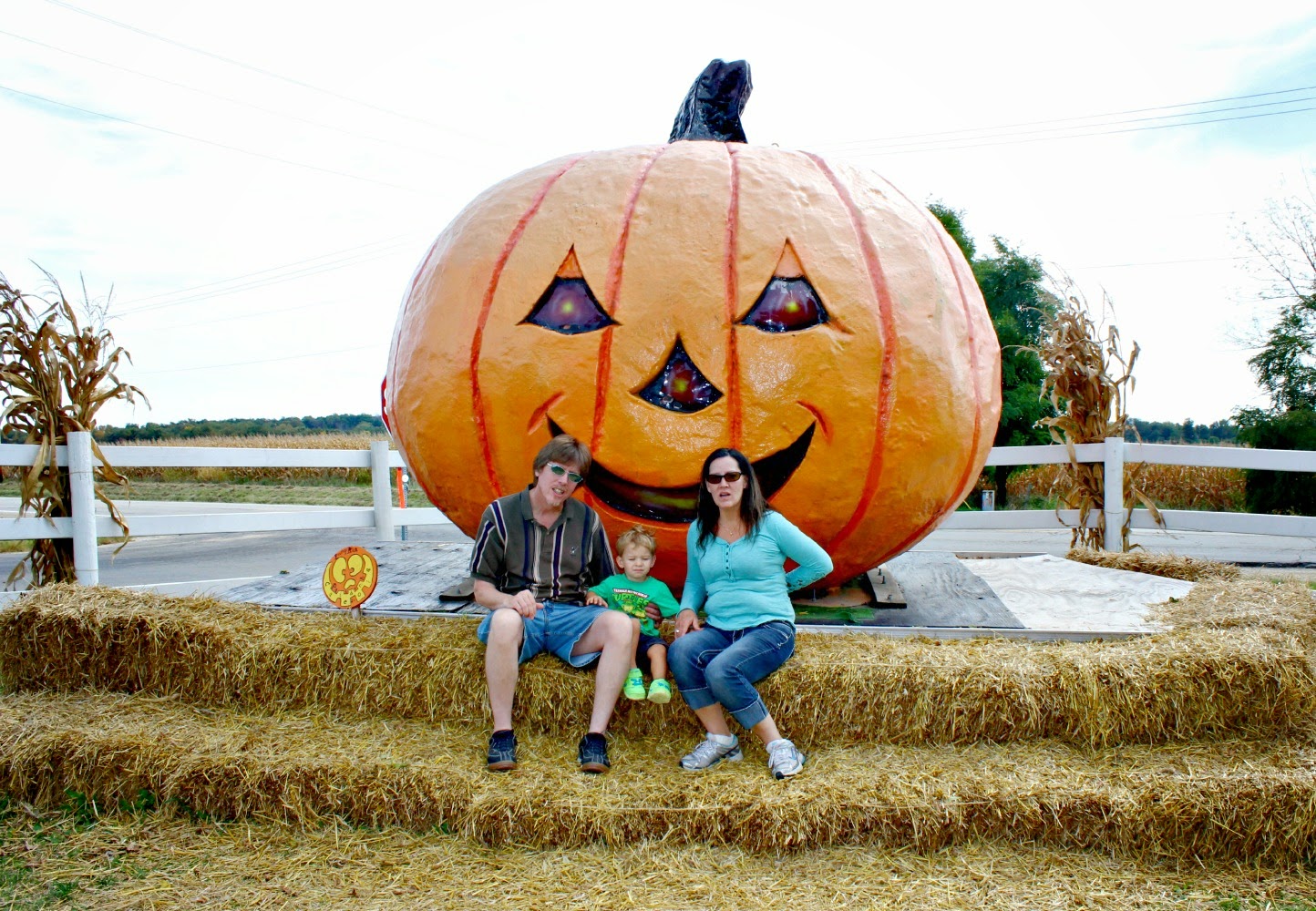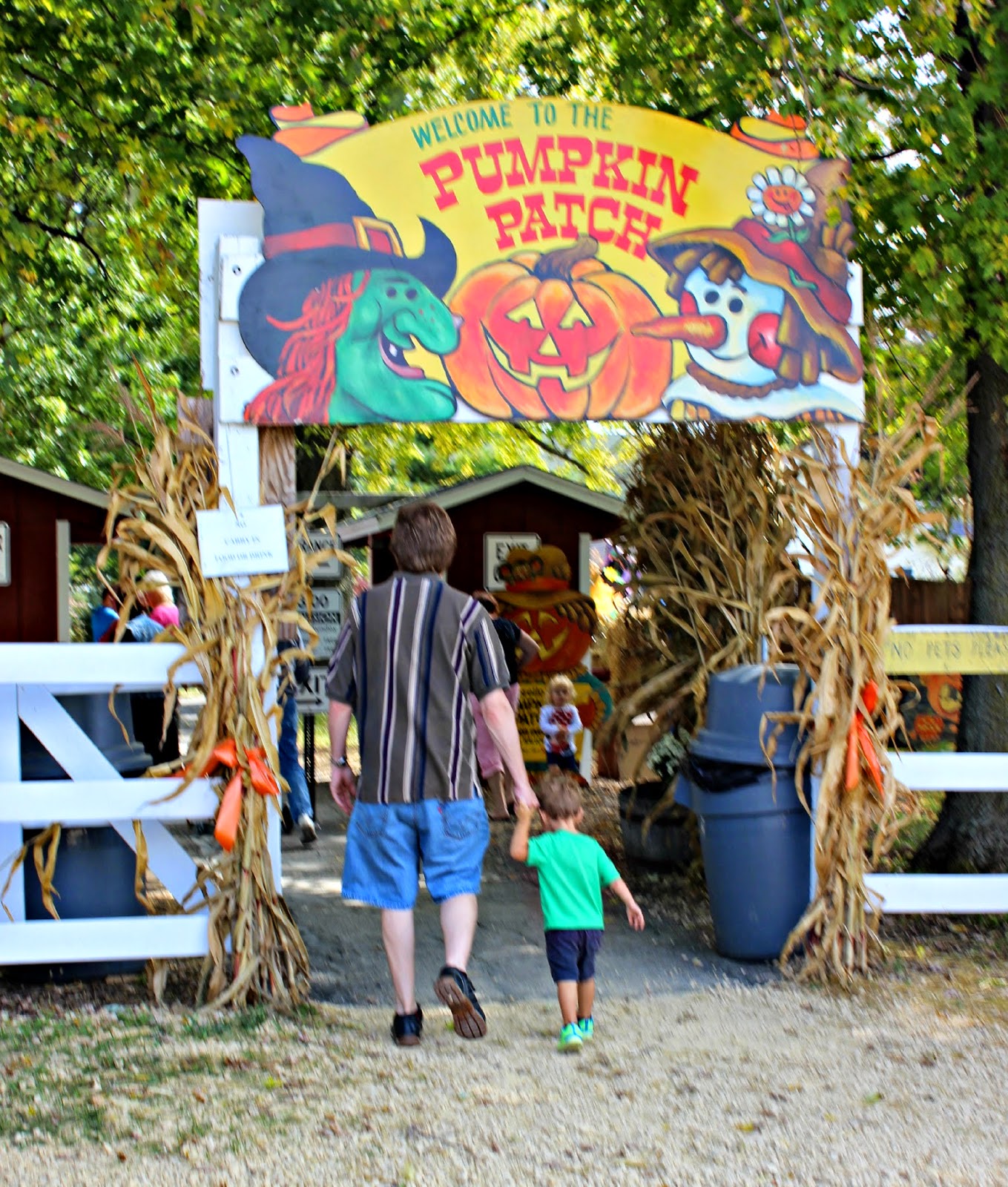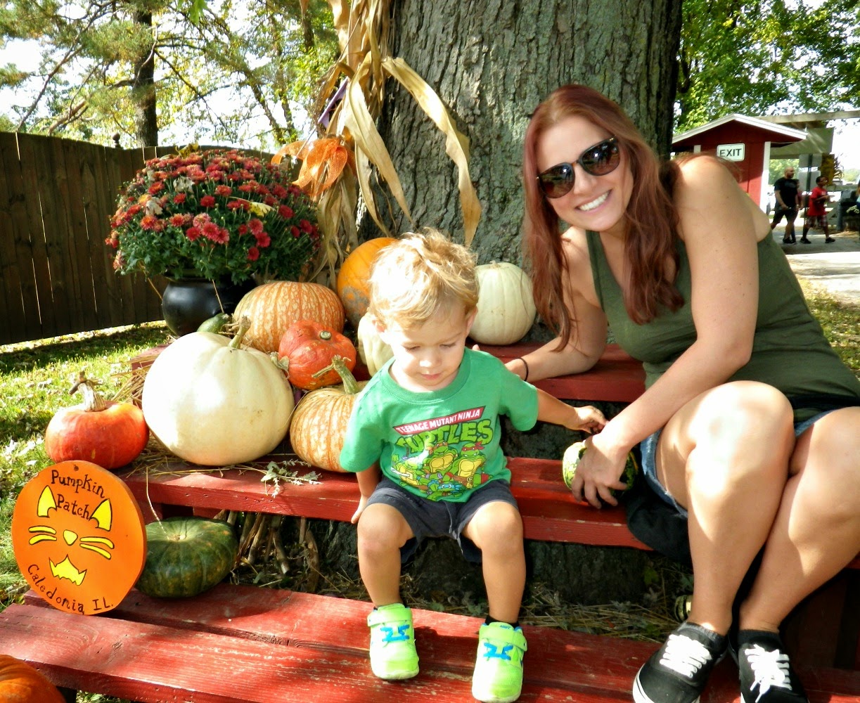 Last week I posted about our trip to the Apple Orchard with grandma and grandpa when we went back home to Illinois at the end of last month. On that same day, we also visited the pumpkin patch. I had to take Myles here because it is the same pumpkin patch I went to every year as a child and they have a lot of the same things there. It brings back tons of fond memories and hopefully it will for Myles now too!
