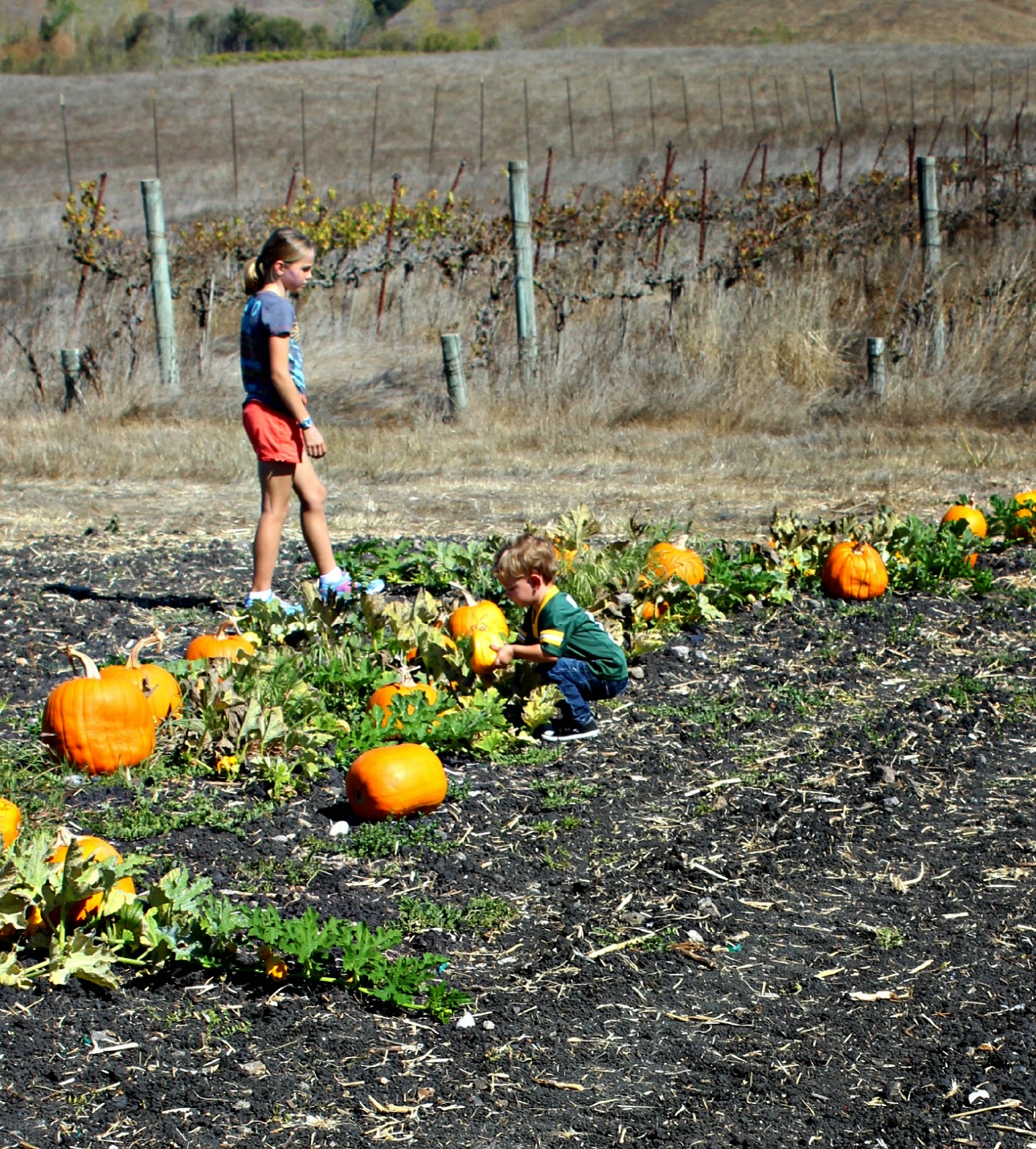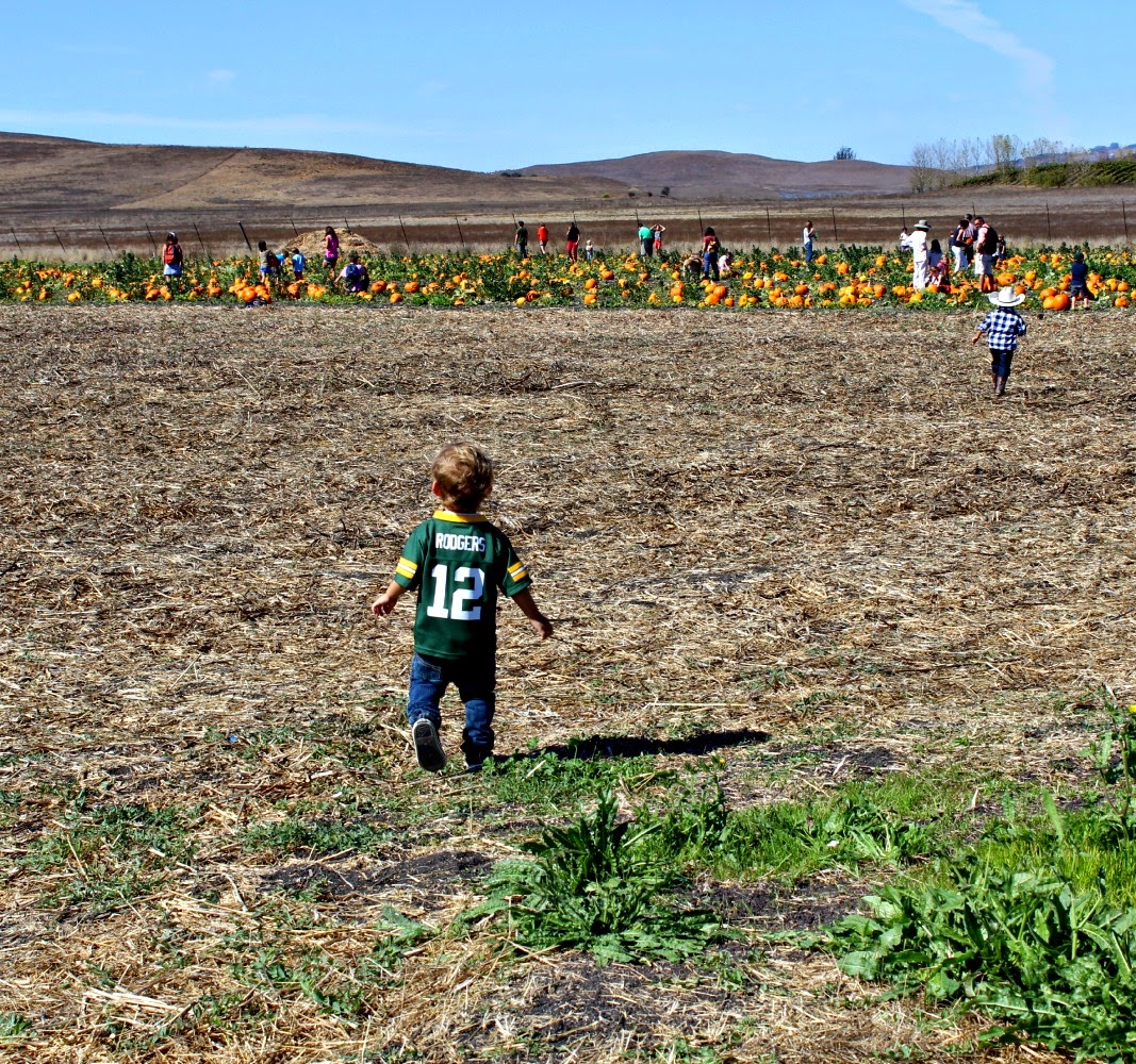 So by the title of this post it may be concluded that I have a problem... and normally I would try to justify this problem with some sort of excuse about how our first pumpkin patch was in Illinois so I had to go to another patch out here in California, but let's be real here people.. I have a thing for pumpkin patches and I also have a Type-A thing that makes me have to check out every single patch, museum, festival, park, etc. in existence. So here I am today sharing with you guys our second pumpkin patch experience (first in California). And if I am being completely forthcoming, I have even since taken Myles to a third pumpkin patch! I'll spare you a third post though and just get to this one! I am also linking up again with two of my favorite blogging