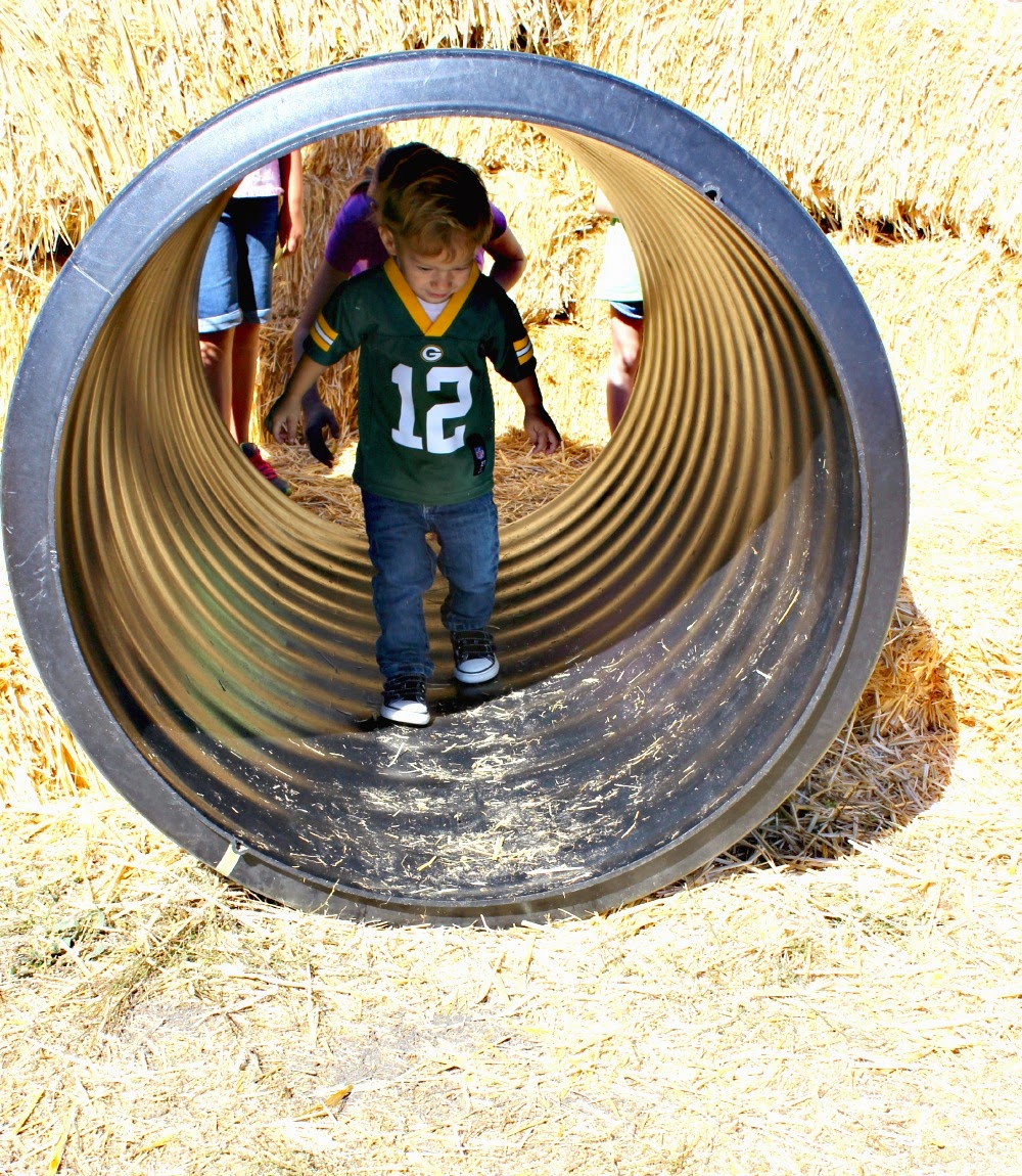 Straw maze: I was super surprised that Myles spent tons of time in this maze. I didn't think he would even walk through it, but he was running around, crawling through holes like a regular farm boy!