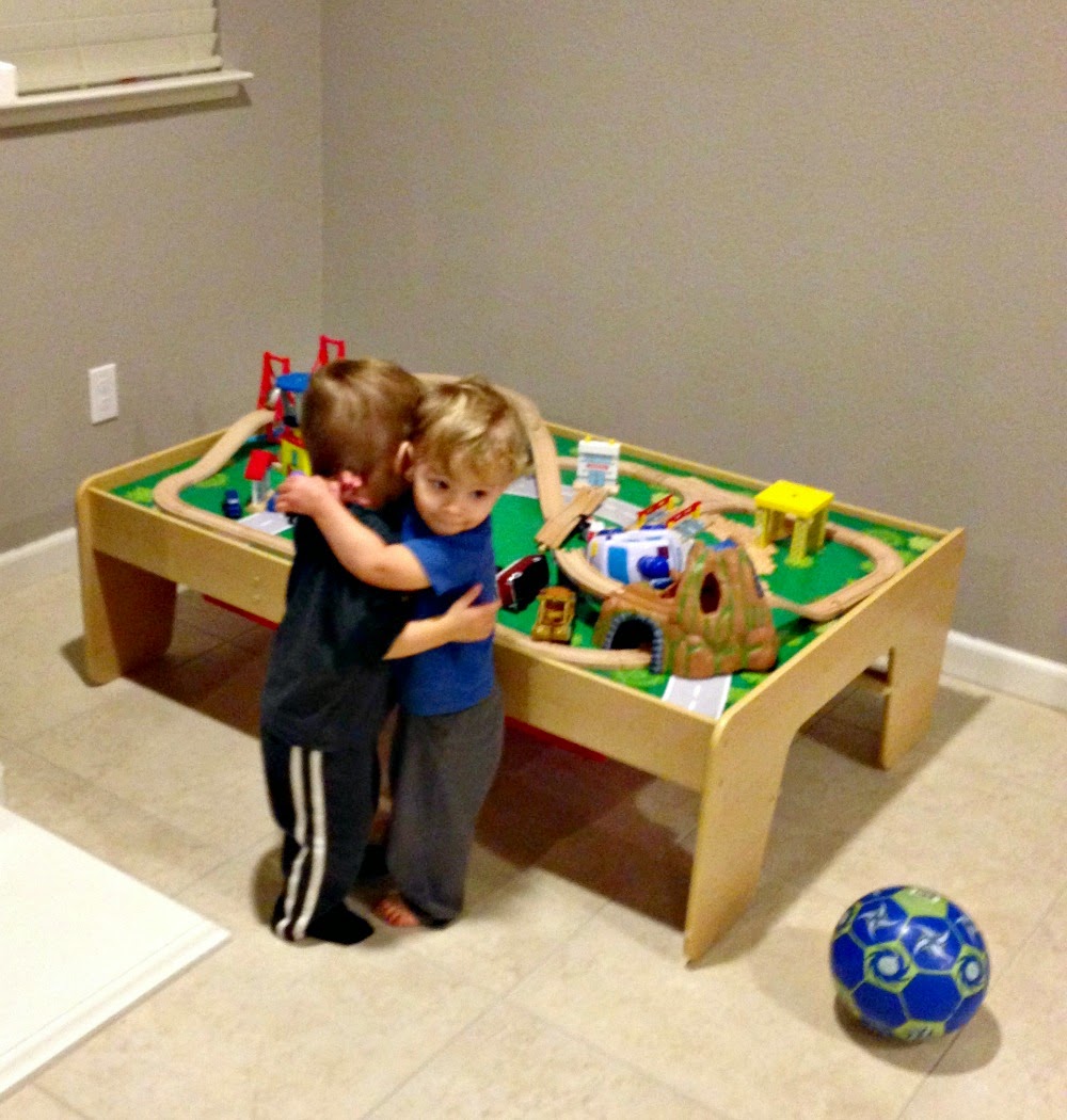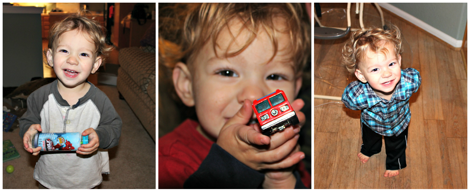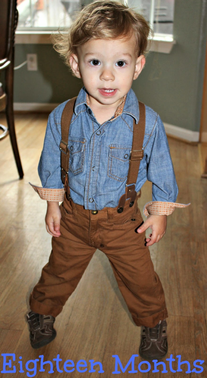 As far as nursing goes, he was still going strong... I am not sure if there will ever be a time that this changes! I was working on weaning the number of times that he nursed throughout the day though. Last month, he started weaning his evening nursing time himself, so I just tried to stick with it as much as possible. He did pretty well and I would only give in maybe once a week, if that. Since that was going pretty well, I tried to cut back the day time feedings as well. I noticed that if we were busy throughout the day, he wouldn't need to nurse at all between morning and nap time. Once I noticed that happening more and more, I knew that he didn't need it for nourishment during that time anymore. And so began my efforts to wean daytime nursing. If we were busy (occupied), it was no biggie. However if we were at home just hanging out, he would ask for it a lot. So it seemed like it was mostly out of boredom. I would try and distract him or get his attention on something else to occupy his mind. That worked well most of the time, but of course there were days when he really needed to nurse for whatever reason and eventually I let him. Throughout the month though, we made huge progress!