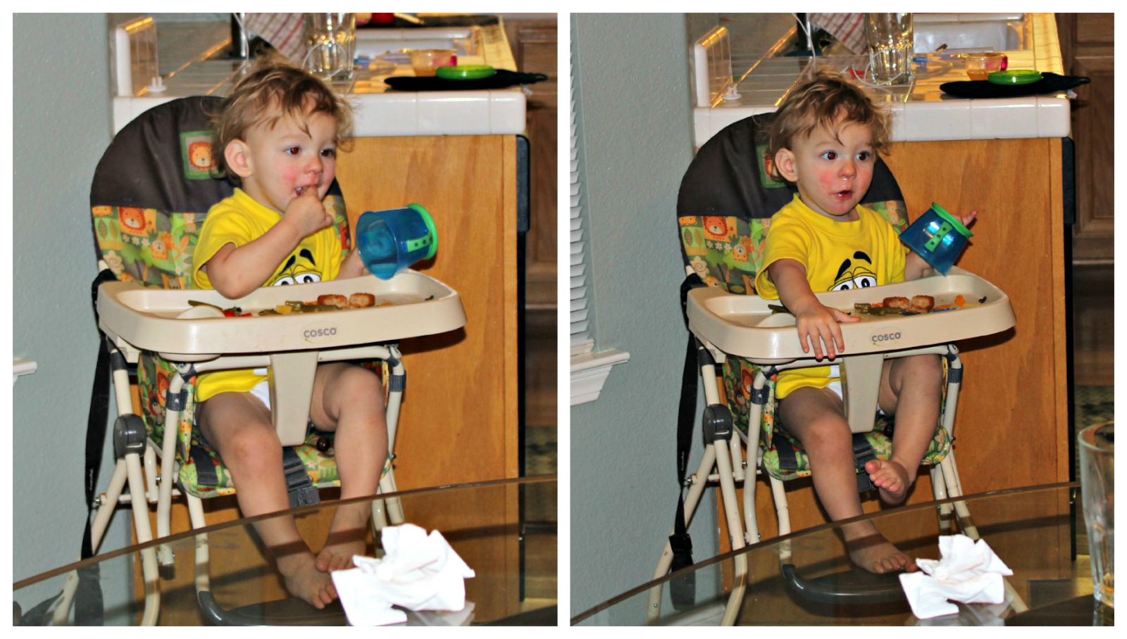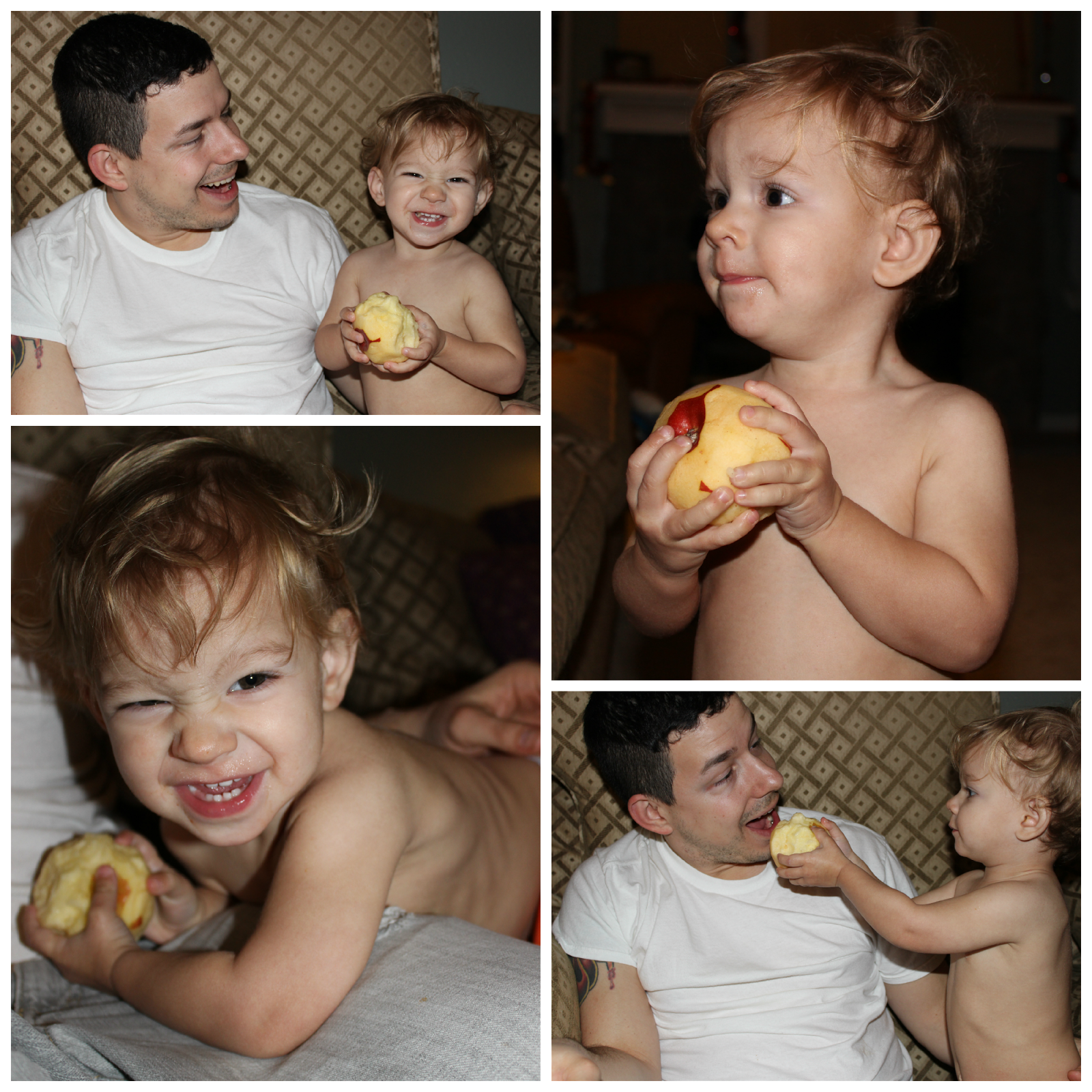 He also loved to share his food. He thought that feeding adults was the funniest thing ever. He liked to chew/gnaw on apples, but I had to take the skin off first!