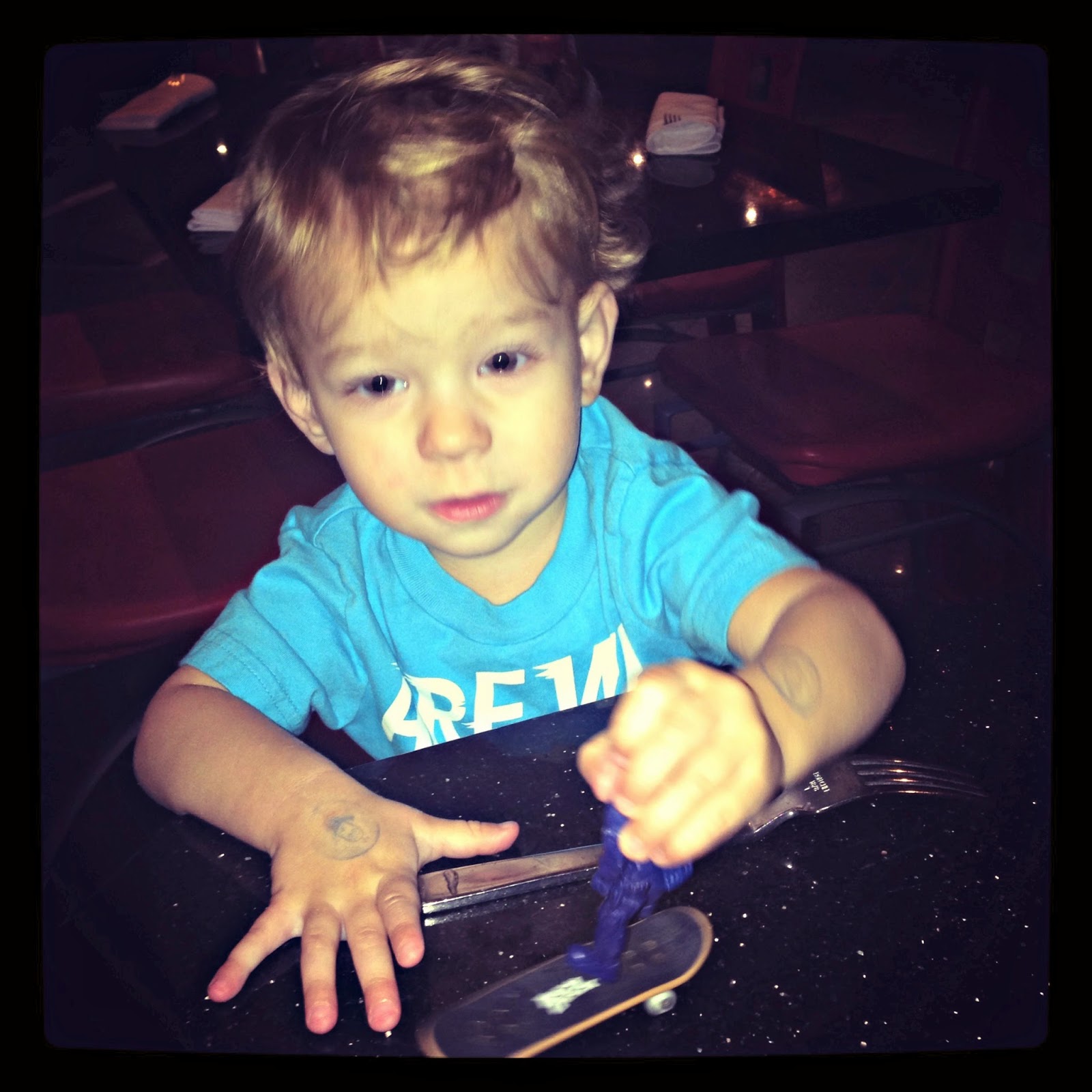 • Myles started getting into imaginative play this month and it was so fun to watch him start to come up with ideas and scenarios all by himself! We were out to eat and I caught him making a cop skateboard!