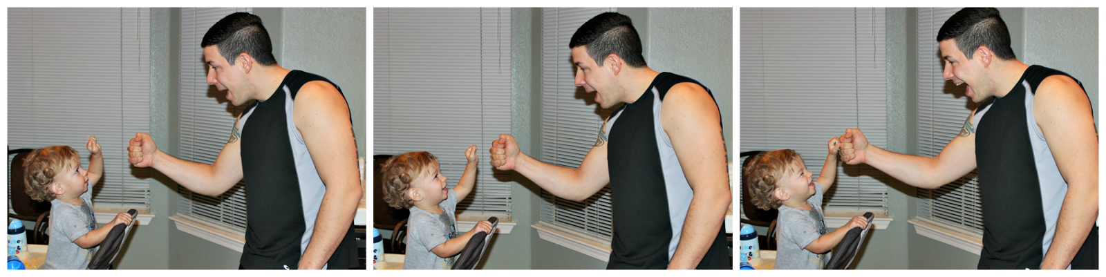 • This month Myles hit a HUGE milestone for Mark. Since Myles was a newborn, Mark did the pound with him, but called it 'boom, boom'. He did it all the time, several times a day, and was waiting for him to finally do it back to him one day. Well it took 18 months, but on January 8th he finally did it! These pictures were from a few days later when I was able to catch it on camera :)