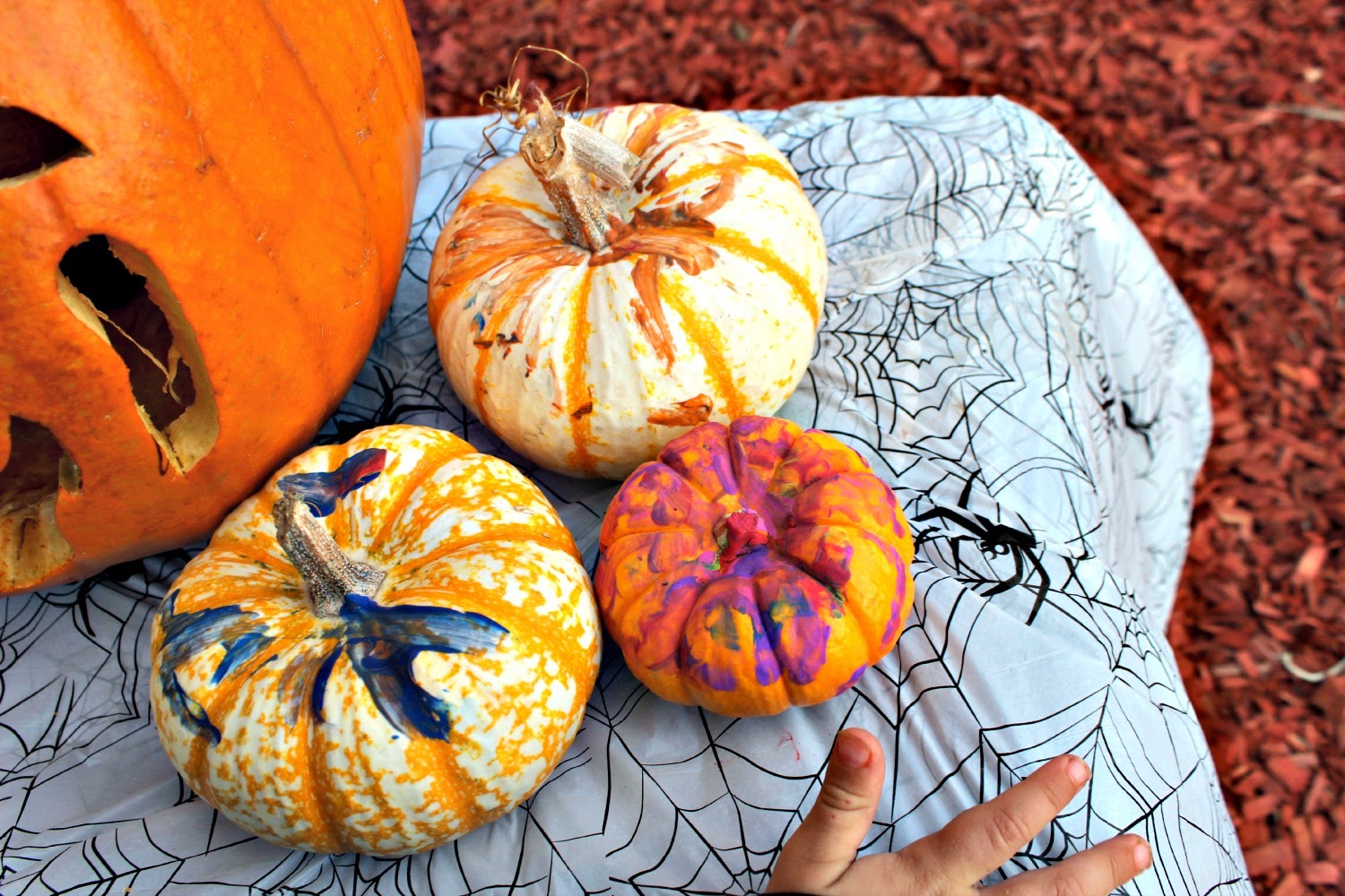 After dinner we went out and tried to do what we could before it got too dark. Myles painted his small pumpkins and then got messy with the guts.